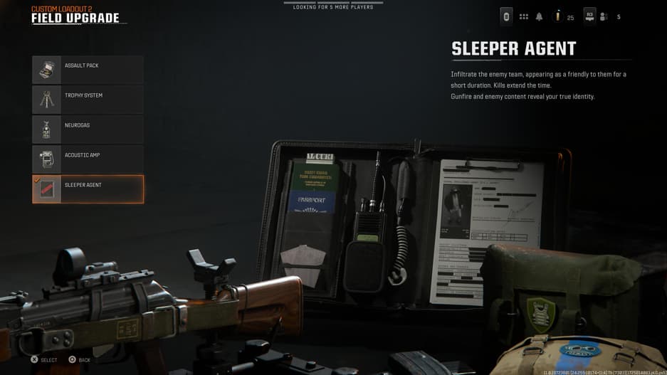 Но самым большим и интересным нововведением стала полевая модификация «Спящий агент», позволяющая переодеться вражеским оперативником и внедрится в команду противников. Маскировка сохраняется не очень долго, но ее можно продлить, совершая убийства. Может показаться, что получать возможность фривольно расхаживать среди врагов, слушать их голосовой чат и набивать фраги немного нечестно, однако «Спящего агента» легко вычислить, ведь предатель не отображается на карте как союзник; перк «Бдительность» также делает маскировку бесполезной.
