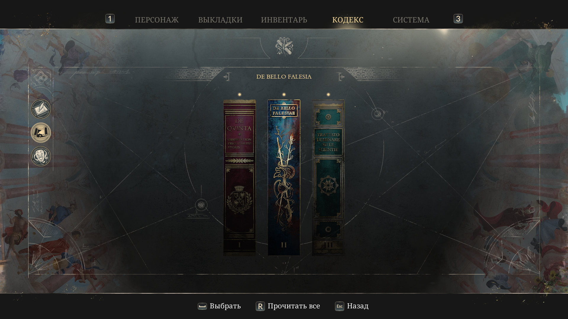 К построению вселенной тоже есть вопросы. Читая здешний кодекс, ты мало чего понимаешь об этом мире, кроме того, что здесь творилась масштабная бойня. При этом, разработчики не постеснялись лаконично вписать в неё концепты карт Таро в сеттинге Италии эпохи Возрождения и Римской империи.