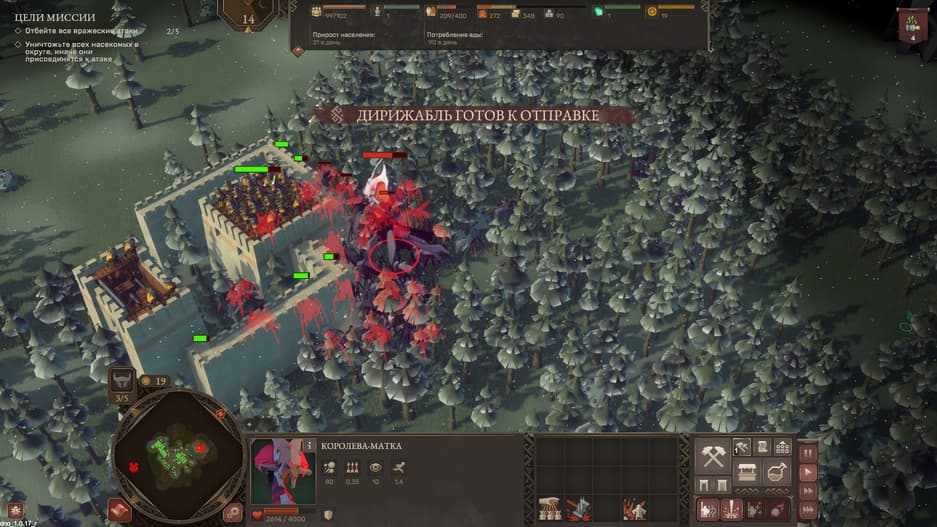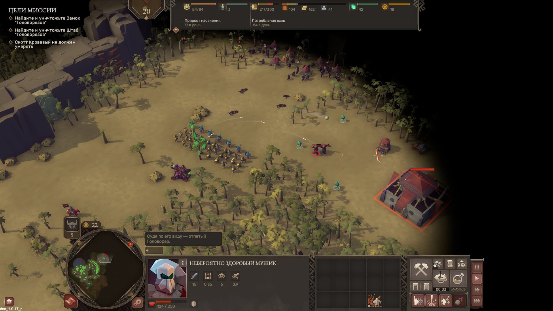У меня возникали трудности с адаптацией к локациям. Ответ на вопрос «почему ресурсы расположены так неудобно» появился в тот момент, когда трупы солдат внезапно поднялись в виде нежити, и заставили перезапустить миссию. Оказалось, что окружение генерируется случайно, что значительно влияет на начало игры. Для других режимов случайная генерация делает прохождение интереснее, но в кампании хочется стабильности. Кампания в They Are Billions разработана таким образом, что игрок становится единым целым с городом – жадно «пожирая» территорию и ресурсы на своём пути. И всё это делается куда более интуитивно и понятно.