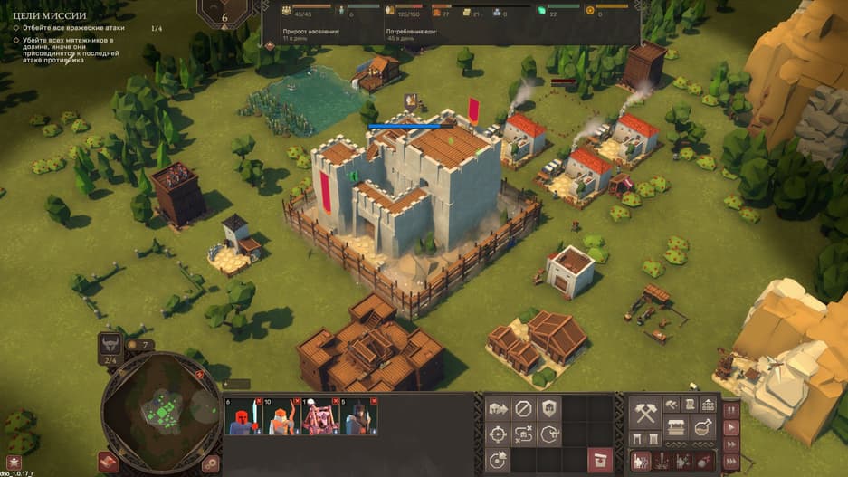 Игроку предоставляется ратуша и небольшое войско. Каждая миссия начинается с постройки домов, которые становятся приютом для новых жителей. Людей необходимо обеспечить едой в виде ягод, рыбы и хлеба. Необходимые для строительства материалы производятся в лесопилках, каменоломнях и шахтах по добыче железа. Когда того позволяют финансы – можно улучшить ратушу, что переводит поселение на новый этап развития. А с помощью домов строителей можно проводить экспансию на удалённые земли.