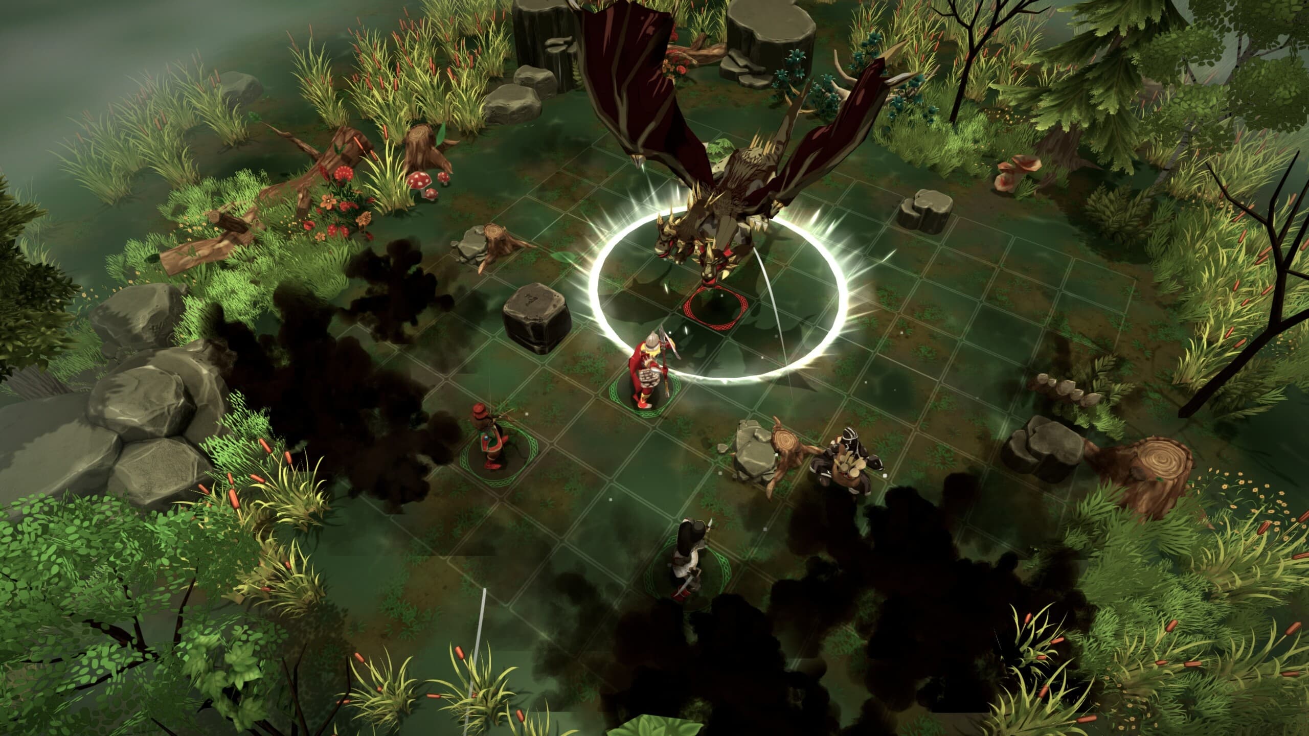 Как это работает на практике? Например, в первом акте предстоит схватка с Лихом Одноглазым — боссом, который призывает тотемы. Эти тотемы снижают вашу атаку, а их уничтожение усиливает самого босса. Оптимальная тактика — сосредоточиться на одном из них, уничтожить его и заманить босса в это место. Правильная расстановка бойцов перед боем помогает успешно реализовать такой план.