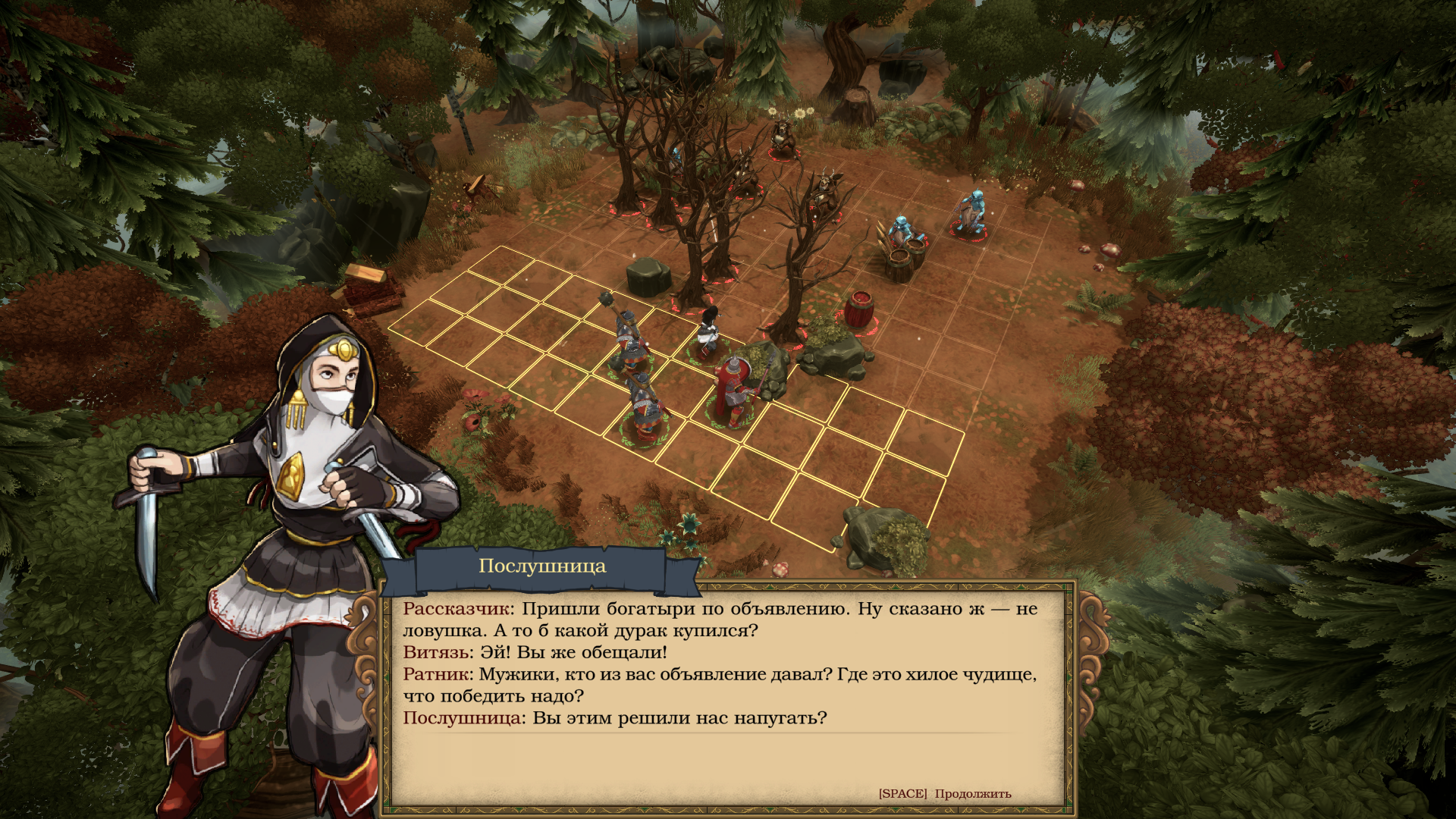 Главное, что делает сражения по-настоящему захватывающими — это разнообразие героев и их уникальные способности. В вашем отряде можно встретить не только классических «поповичей», но и более экзотичных персонажей, каждый из которых добавляет тактической гибкости. Например, среди них может оказаться стрелец с гранатами, религиозный фанатик-ассасин, лесная ведьма с полиморфом и славянский аналог Пуджа.