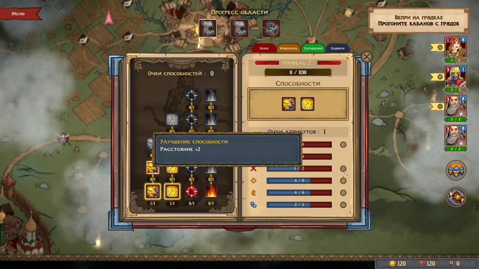 Поэтому выгоднее всеми силами сохранять стартовую команду, что ограничивает эксперименты и немного поддушивает. Единственный выход — прокачивать слабых героев в боях с мелкими врагами, постепенно поднимая их уровень, но тогда пострадает основной отряд. Однако можно забить и наслаждаться игрой, ни о чем не думая, — некоторые шероховатости сгладит последующая прокачка. Но к ней тоже возникает ряд вопросов, а также к наполнению карты и экономике.