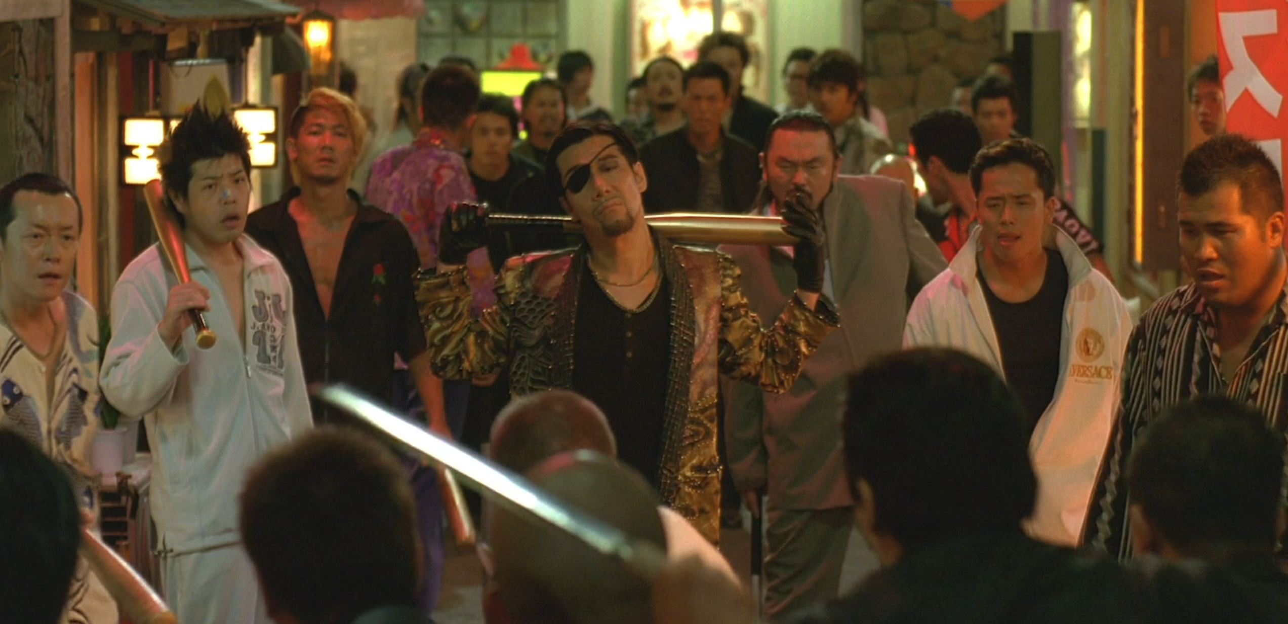 Далее нас знакомят с Горо Маджимой (Горо Киситани), который сразу предстаёт как воплощение хаоса и жестокости. В одной из сцен Маджима набрасывается на человека только за то, что тот плюнул на пол, громко заявляя, что такие люди портят город, хотя сам переулок, где это происходит, завален мусором. В другой сцене он неожиданно прерывает бой, чтобы проучить своих подчинённых, после чего возвращается точно в ту же позу, словно ничего не произошло, чтобы продолжить драку с момента, на котором остановился.
