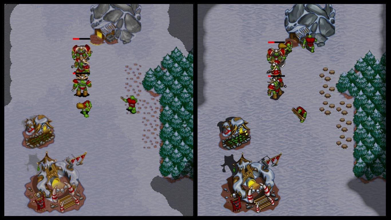 Кроме того, разработчики, под прикрытием благих намерений «сохранить аутентичный опыт», не удосужились поработать над балансом и исправить кривой, даже по меркам 1994 года, искусственный интеллект. За 30 лет его так и не научили находить оптимальные маршруты для передвижения по карте: юниты часто упираются в стены, ходят по кругу или вместо того, чтобы пройти по прямой, двигаются «по стеночке», огибая каждую текстуру. Ничего, кроме дополнительного раздражения, это не вызывает, и ситуацию не спасает улучшенное управление мышью и увеличение отряда до 12 юнитов.