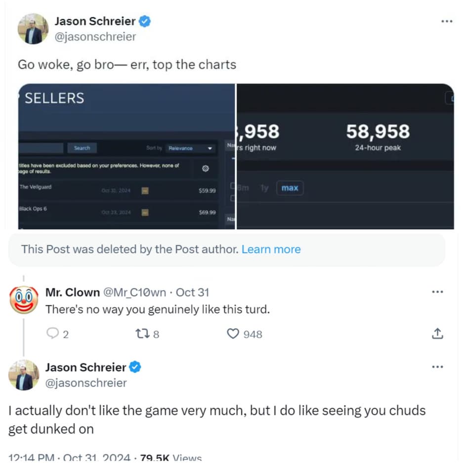 В итоге это привело к тому, что Керри Мойнихан, сотрудница Blizzard, совершила суицид. Спустя 3 года он решил рассказать подробности трагедии на своей странице в X. Но вместо восхвалений журналист получал упреки в халатности и набивании рейтинга на умершем человеке. 3 года назад эта новость могла спасти девушке жизнь. И на фоне конфликта с читателями Шрайер анонсировал новую книгу про путь становления Blizzard Entertainment, а также стёр все те посты с инсайдами о Blizzard, обвинив комментаторов в токсичности.