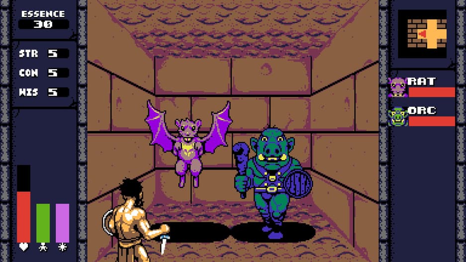 Типичный представитель жанра Dungeon Crawler. Игроку предстоит помочь полуголому мужику сбежать из подземелья. Для этого нужно исследовать каждый уголок лабиринта, в котором спрятаны зелья, оружие с доспехами, магия и переход на следующий этаж. При встрече с монстрами начинается битва в реальном времени, где нужно уворачиваться и подбирать момент для атаки. Победа над монстрами награждает опытом и полезными предметами, но лишний раз лезть на рожон не стоит!