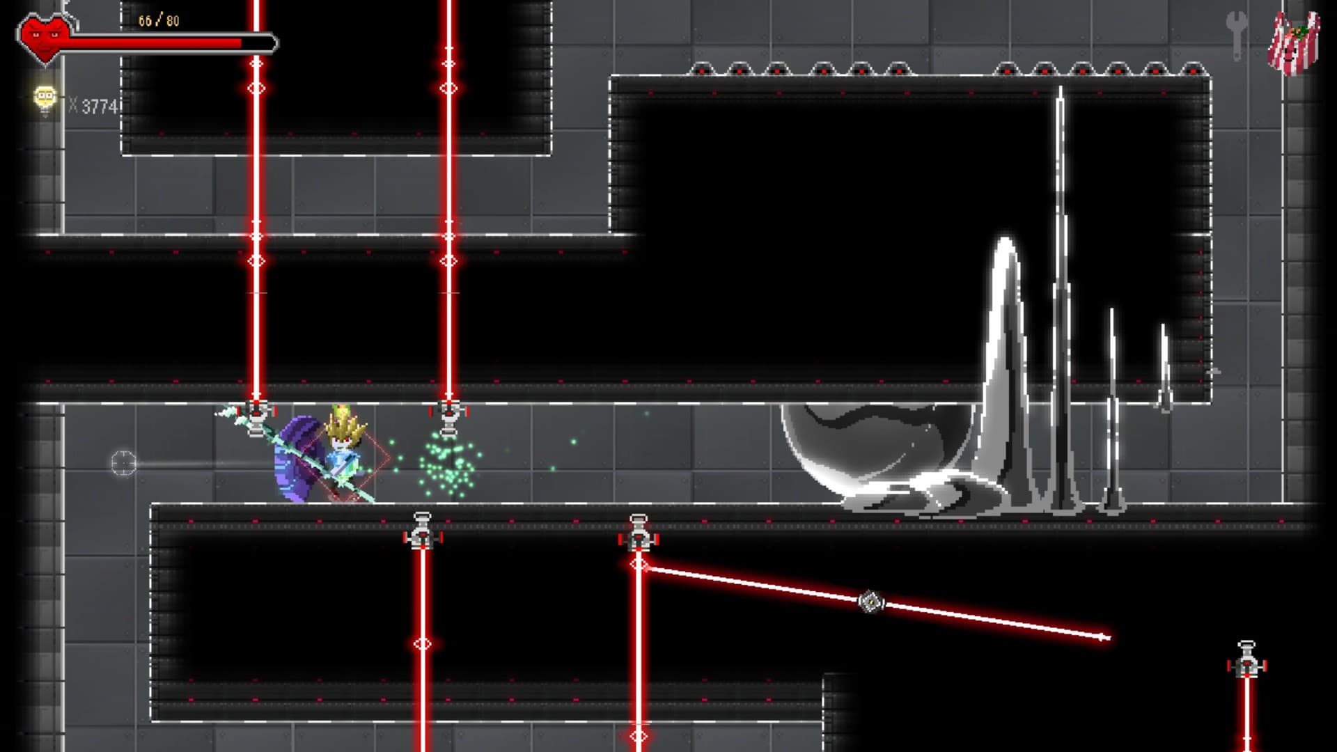 В подземелье опасность представляют не только противники. За время прохождения придётся много прыгать, плавать, и избегать опасности в виде шипов или молний. Продвижение вперёд меняет биомы: пустыню, лес, замёрзшие земли. Вместе с ними меняются и угрозы. Игра награждает за любопытство: исследование закоулков пополняет арсенал чертежами оружия и рецептами новых блюд.