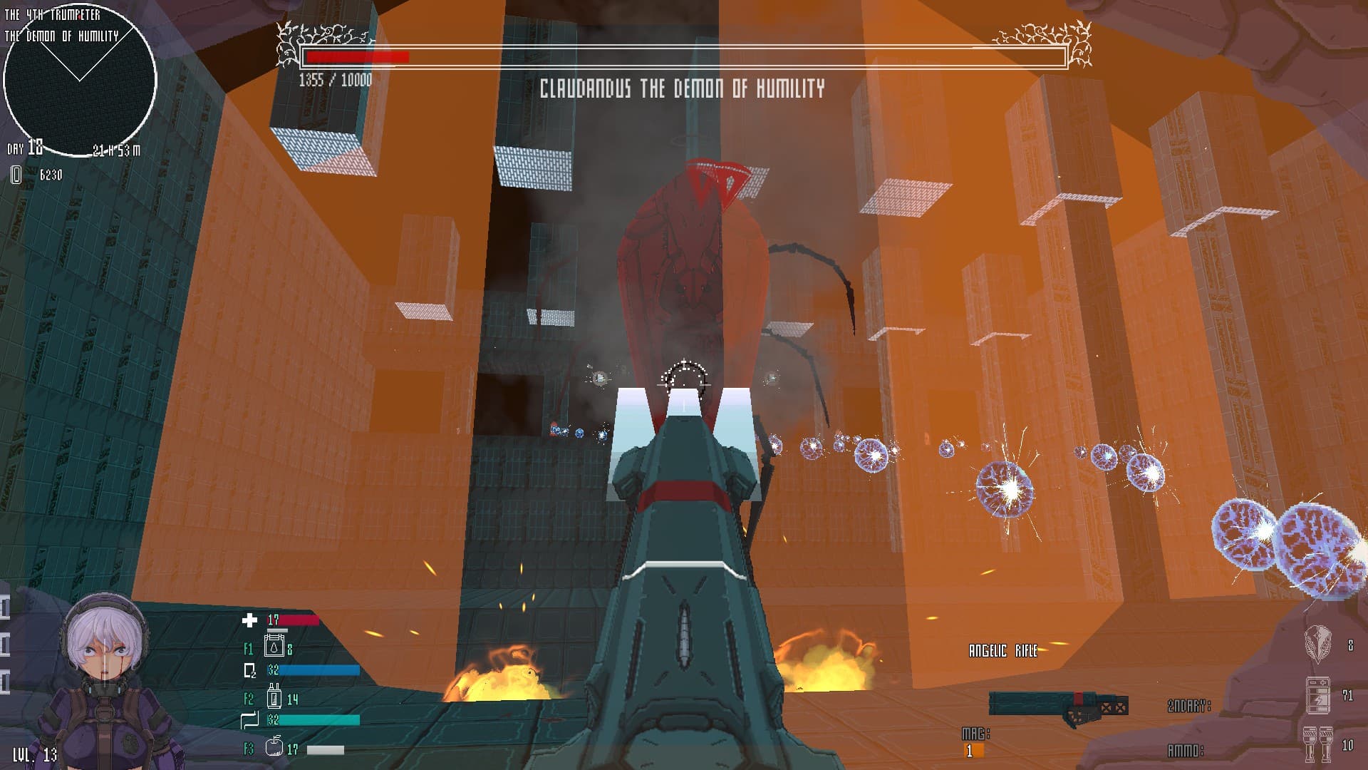 Встречаемые в игре боссы не представляют собой ничего интересного. Перед битвой с ними Мученице выдают ангельское оружие. Оно невероятно мощное, и с лёгкостью разрывает на кусочки большого и злобного плохиша.