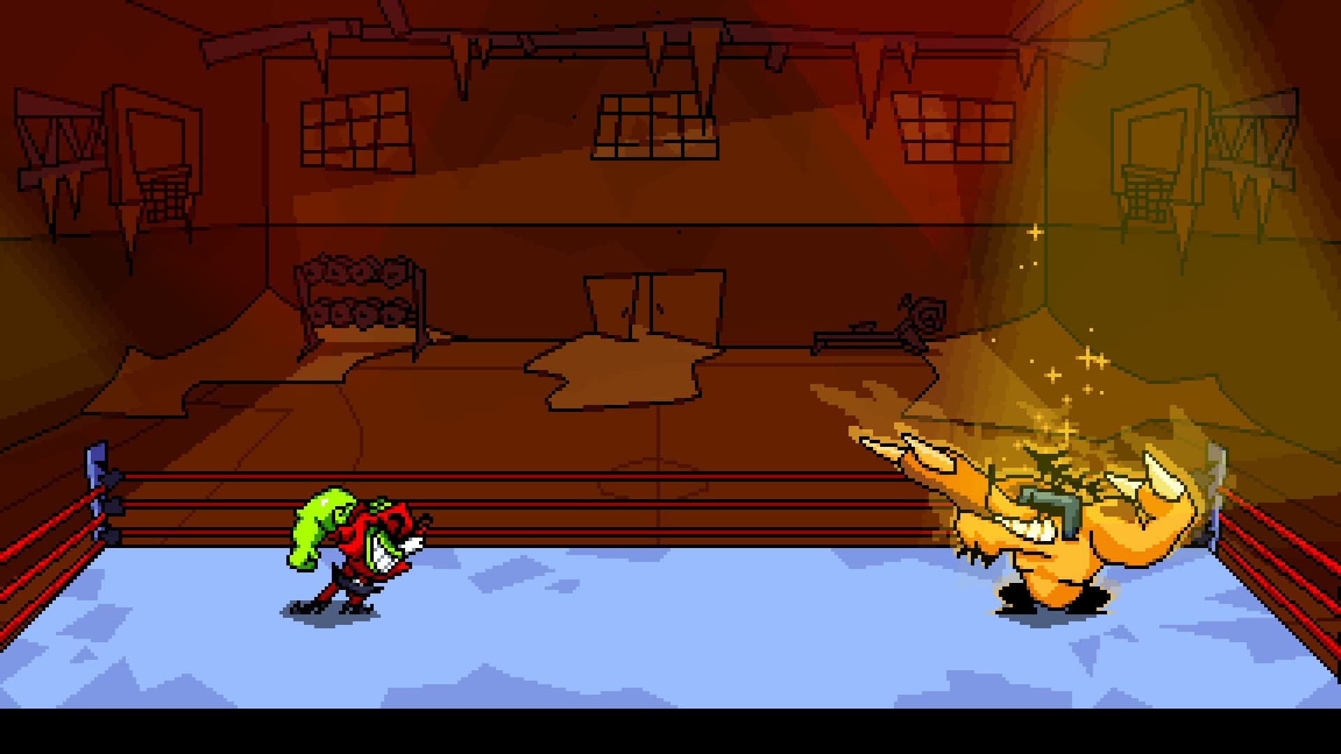 Битвы с боссами сложные и запоминающиеся. Первый же босс сносил большую часть здоровья суплексами, и я долго к нему привыкал. Его мерзость заключалась в том, что он нападал сразу после начала матча. Дальнейшие боссы обладают несколькими фазами, и победить их приходится несколько раз.