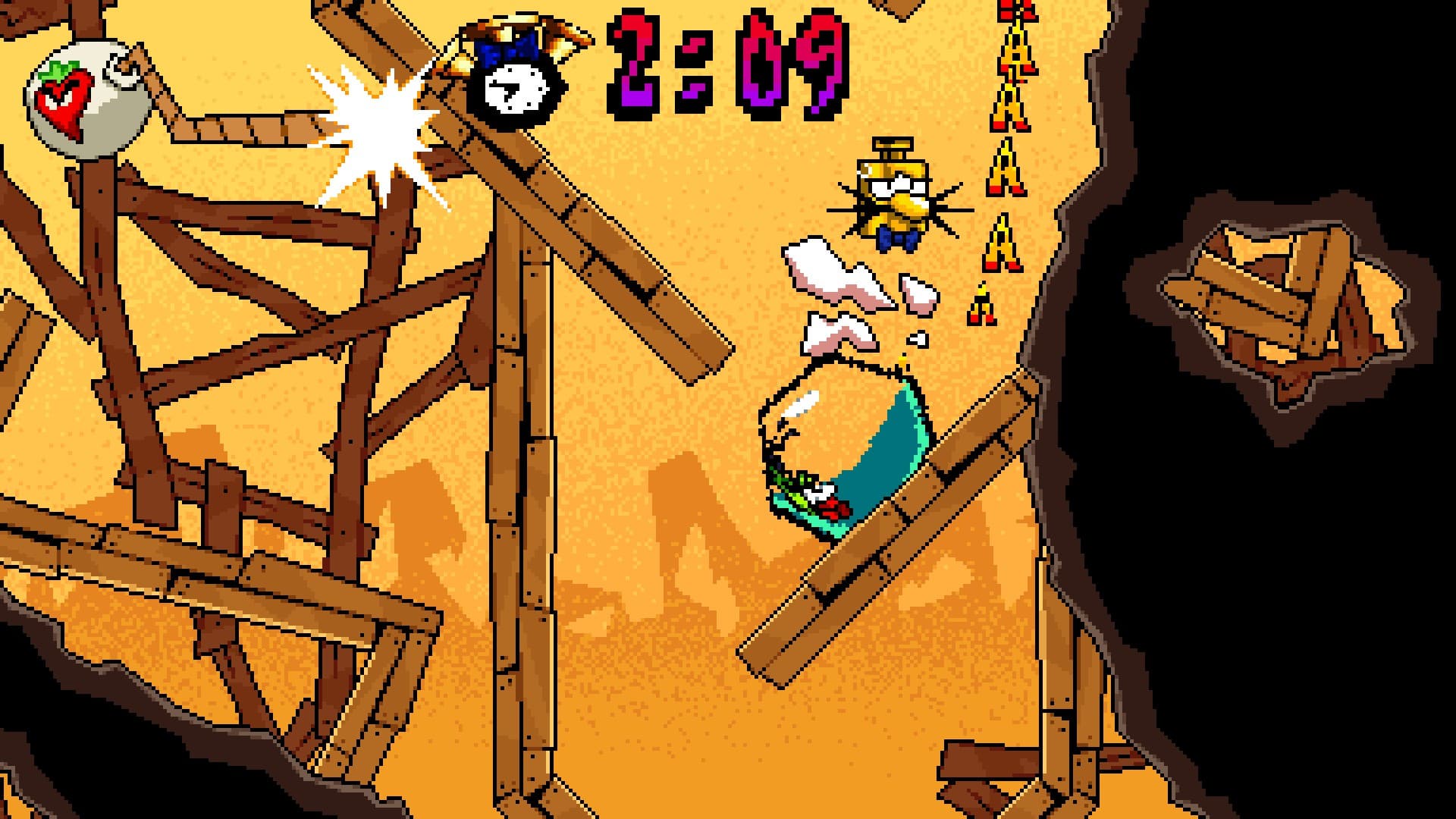 По достижении конца уровня активируется режим «Happy Hour». В реальной жизни данный термин обозначает время, когда различные заведения предоставляют скидку на алкогольную продукцию. В игре же открываются все двери на локации и появляется таймер. До его истечения необходимо добраться до самого начала уровня.
