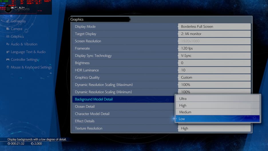 - Background Model Detail — выше «High / Высоких» ставить не рекомендую, только если у вас не RTX 4080 или аналоги от AMD. Либо вы готовы играть с локом на 30 кадров, пожертвовав производительность, как на консолях;