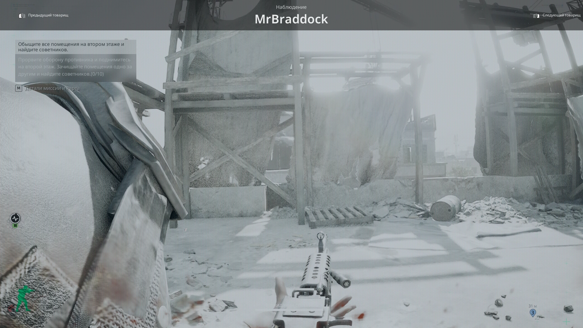 А если игрок ранен и лежит на земле, истекая кровью, то товарищ ещё сможет поднять его. Но на спасение отводится полторы минуты! И если за это время его не удастся спасти или игрока добьют ополченцы, то задачу придётся выполнять уже без товарища.