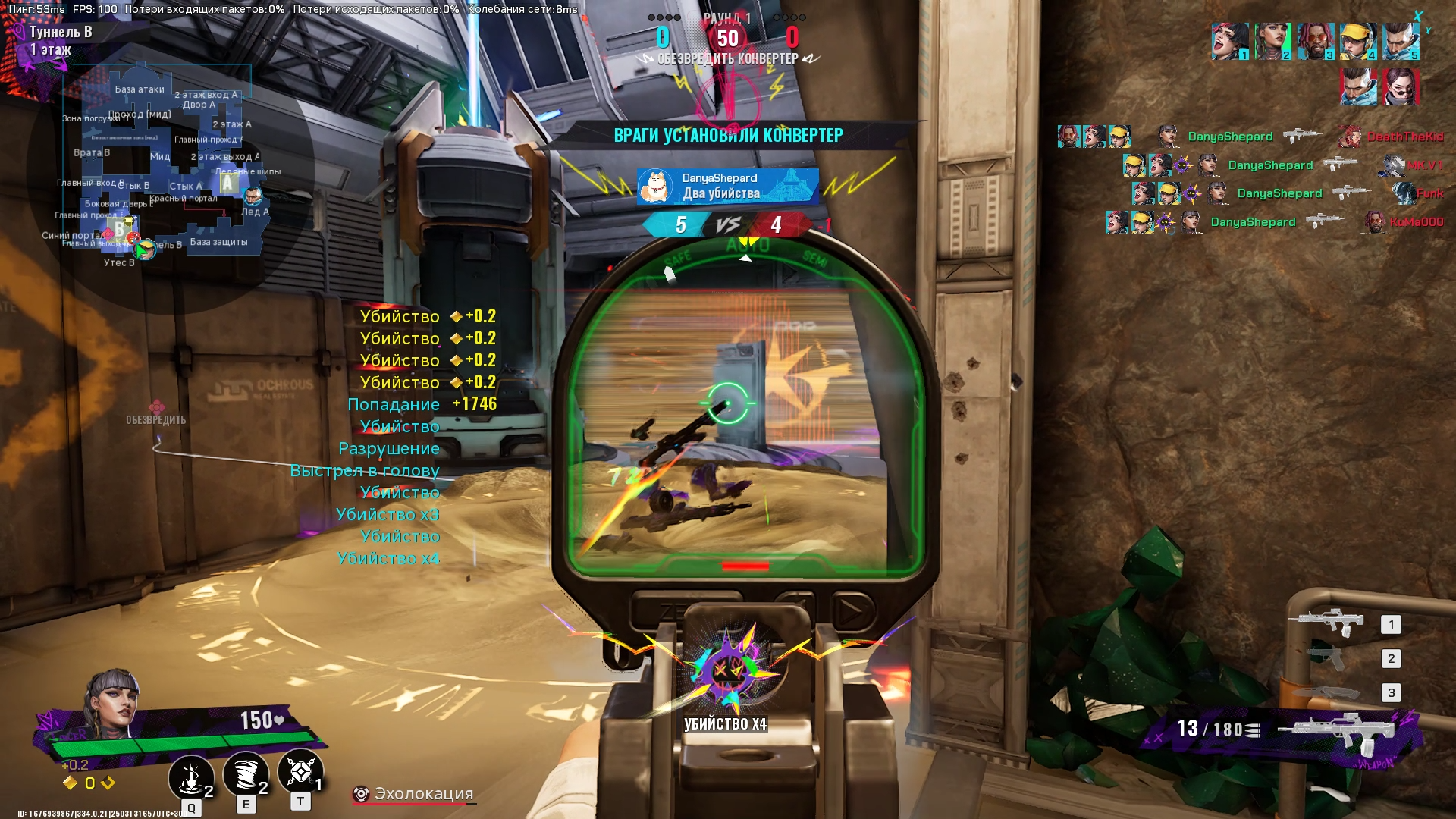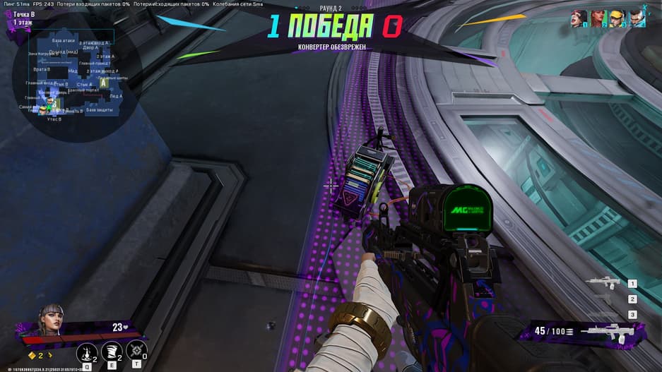 Основная механика стрельбы в FragPunk ощущается приятно: оружие обладает умеренной отдачей и способно уложить противника за 2–3 секунды. Однако впечатление быстро портит серьёзная проблема с сетевым кодом. Нередко случаются казусы: игрок стреляет в цель, но кажется, будто просто стоит на месте.