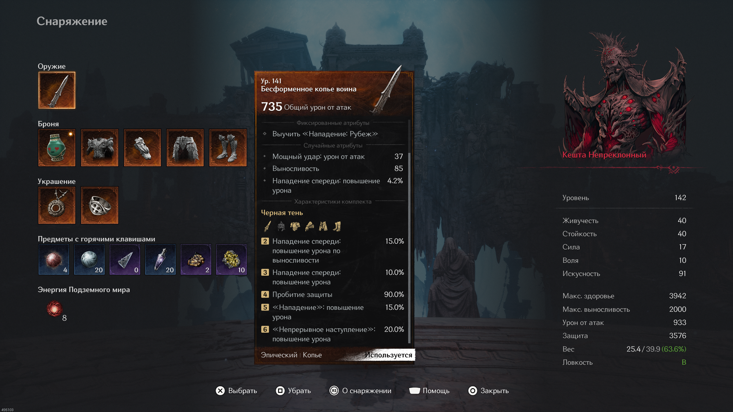 Отдельную благодарность хочется выразить тому человеку, который придумал здешнюю систему прогрессии. Сколько раз вы злились, когда теряли солидное количество душ, умирая на боссе, а потом ещё раз — так и не подобрав их? Здесь такого не будет. Как и в Lies of P, души после смерти подбираются у входа к боссу, но разработчики пошли ещё дальше: за каждую попытку победить босса игра насыпает вам немного «душ» в качестве компенсации. Причём объём зависит от успешности захода — если вы зашли на арену и сразу умерли, почти ничего не получите. Так что «абузить» систему не получится.