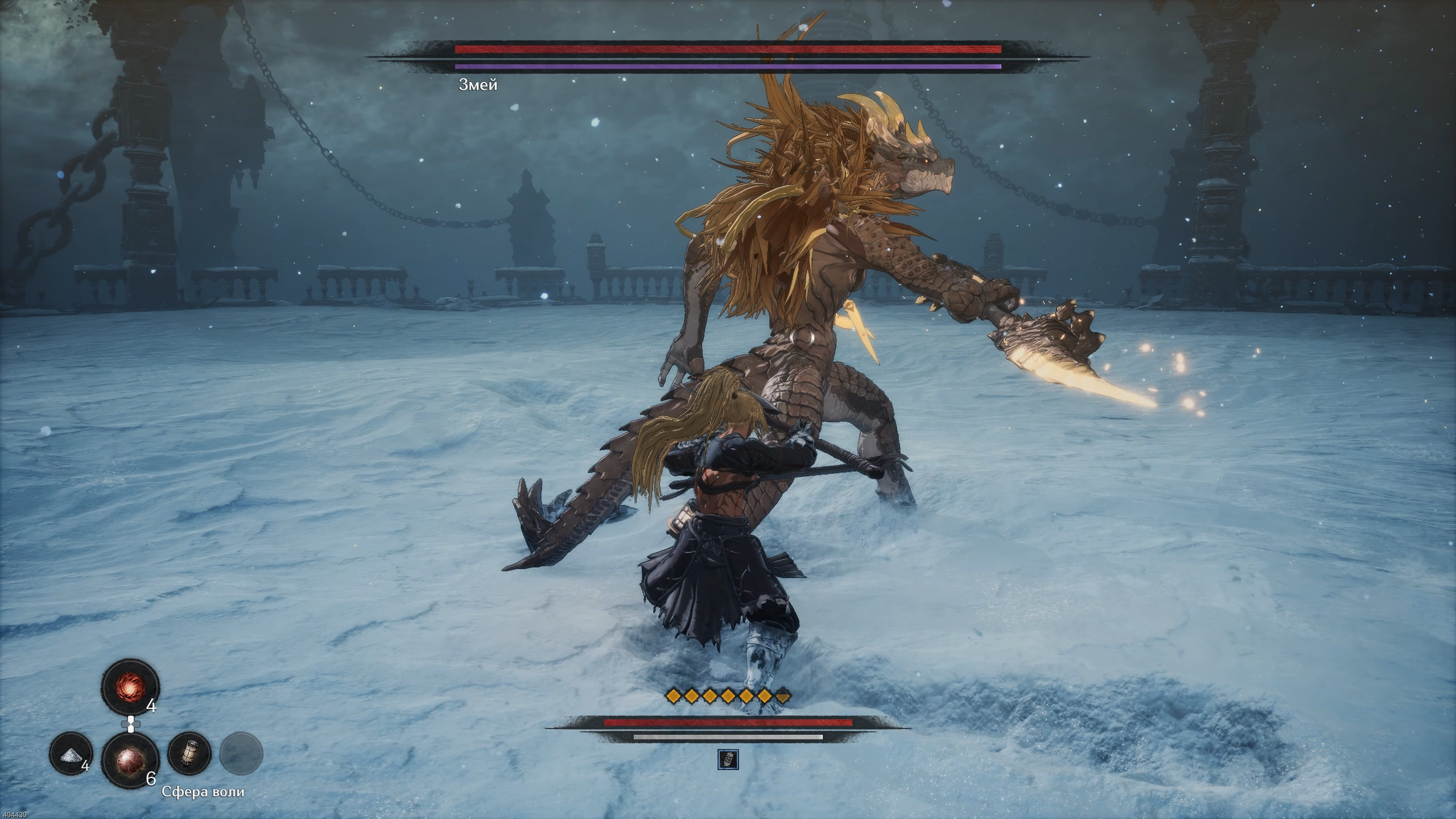 Парирование здесь щедрое и отзывчивое, а главное — при успешном выполнении оно не расходует выносливость. Это позволяет играть максимально агрессивно и не сбавлять напор. А динамика-то какая, ах! Особенно когда босс закручивает очередное комбо из девяти ударов, а ты отбиваешь каждый! Удовольствие — невероятное.