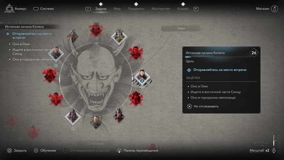 В Shadows вновь использовали систему заданий, которая впервые была представлена в Mirage — отдельная страница с отображением всех целей и союзников. Она информативна, хотя не всегда удобна — поскольку иногда непонятно, в каком именно направлении нужно продолжать прохождение. Понятно, зачем Ubisoft использовали именно её — чтобы дать игроку свободу выбора заданий. Но чаще эта свобода вводит в ступор.