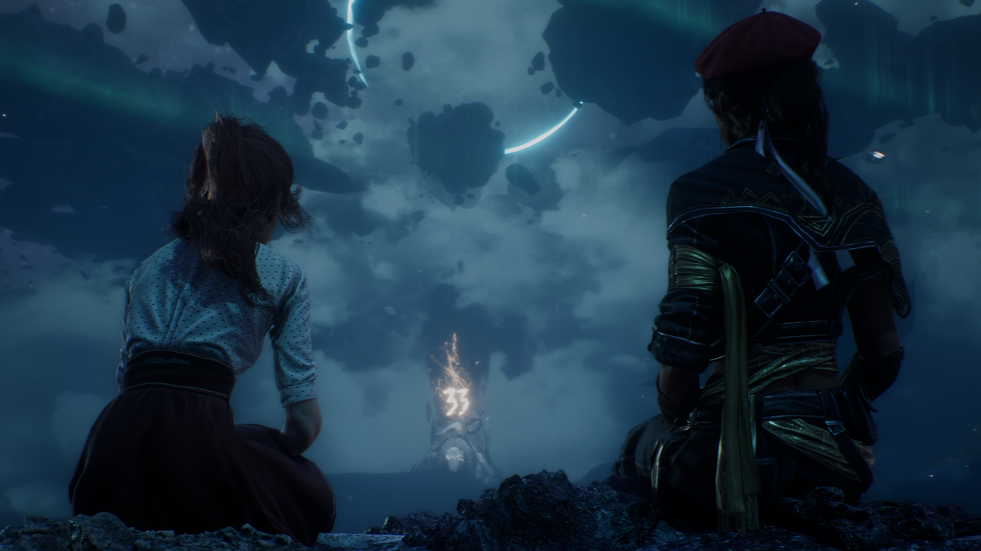 Величественная красота и помпезность Прекрасной эпохи здесь вывернуты наизнанку: перед нами — картина разорванного мира, над которым с одной стороны возвышается гигантский Монолит с выведенной на нём цифрой 33, а с другой — покорёженная Эйфелева башня, будто скрученная в бараний рог неведомым великаном. Парящие скалы скрывают множество удивительных мест: от почти монохромного леса, усеянного алыми цветами, до воздушного казино, над которым неспешно плывут розовые киты.