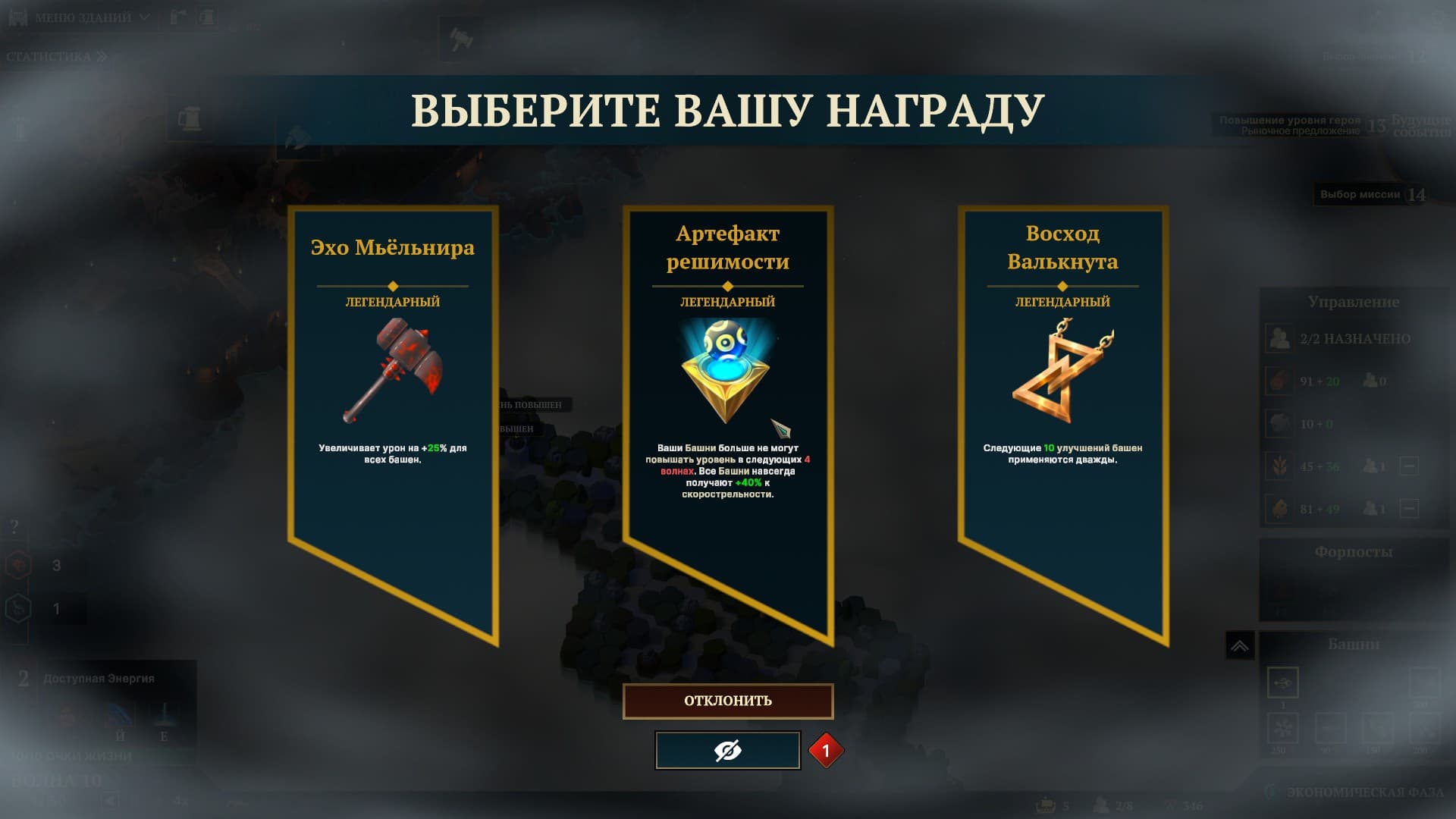 Значительную роль в обороне играют герои. В каждом новом забеге – выбранный герой предоставляет как два атакующих заклинания, так и бонус к экономике или изменениям на поле боя. Но куда выгоднее выбрать опцию с ресурсами! Со временем герои поднимают уровень, что позволяет усилить заклинания и пассивные бонусы.
