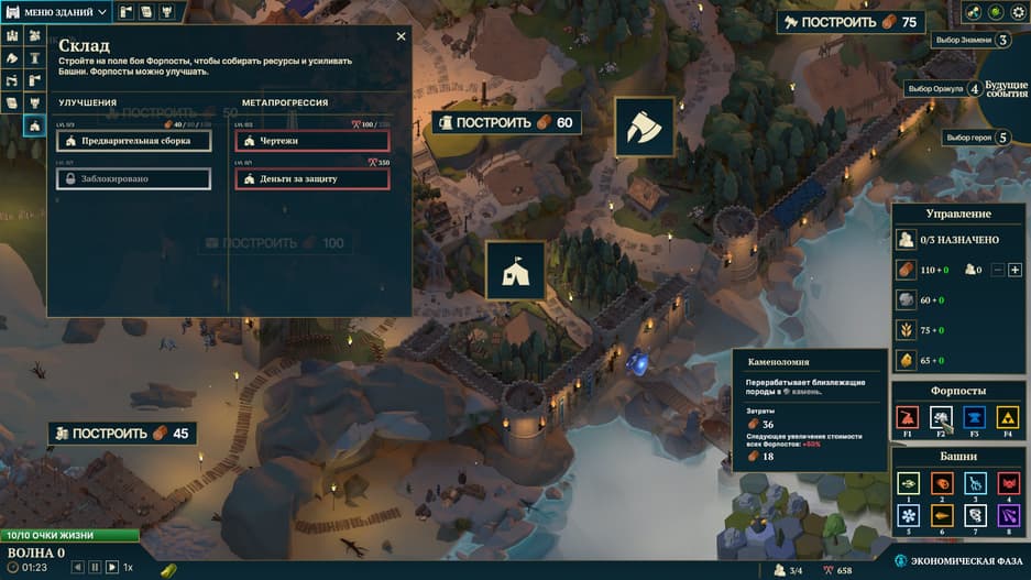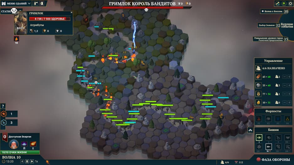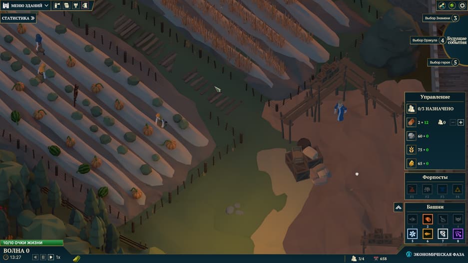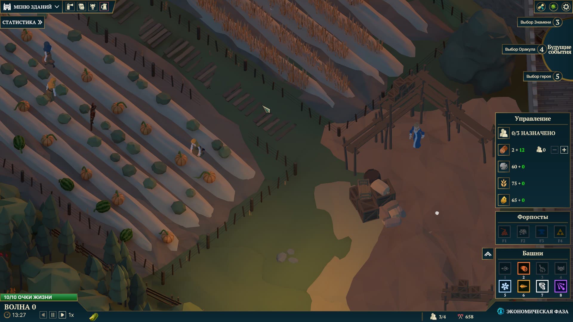 В начале игроку предоставляют минимум инструментов для развития экономики. Даже если в забеге боги рандома широко улыбнутся – дожить до десятой волны и дальше практически невозможно. Остаётся только учиться на своих ошибках и дорабатывать стратегию.