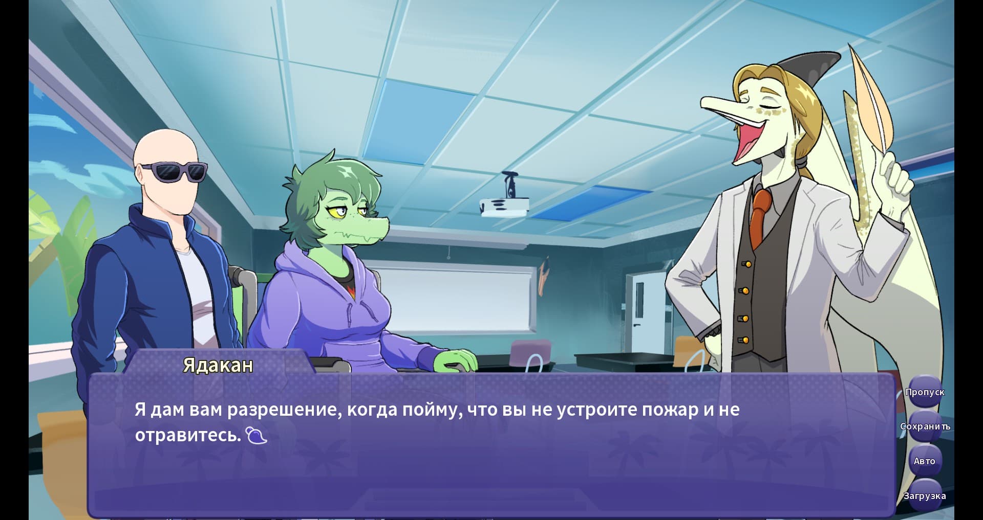 В большинстве визуальных новелл сюжет подаётся через текст и статичные изображения персонажей. Но I Wani Hug That Gator! пошла дальше: модели персонажей двигаются в соответствии с текстом, события насыщаются качественной музыкой и анимациями — меняется даже визуальный стиль. В паре моментов игроку позволят порисовать! Всё это делает происходящее на экране более запоминающимся.