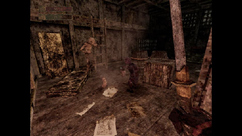 Самыми противными среди противников являются личинки. Эти твари прячутся в ящиках и бочках, и подбирают самый неудобный момент для атаки. Если личинка куснет, то отравит, а укусит она обязательно – попасть по ней та ещё задача! Моя первая смерть была из-за личинки.