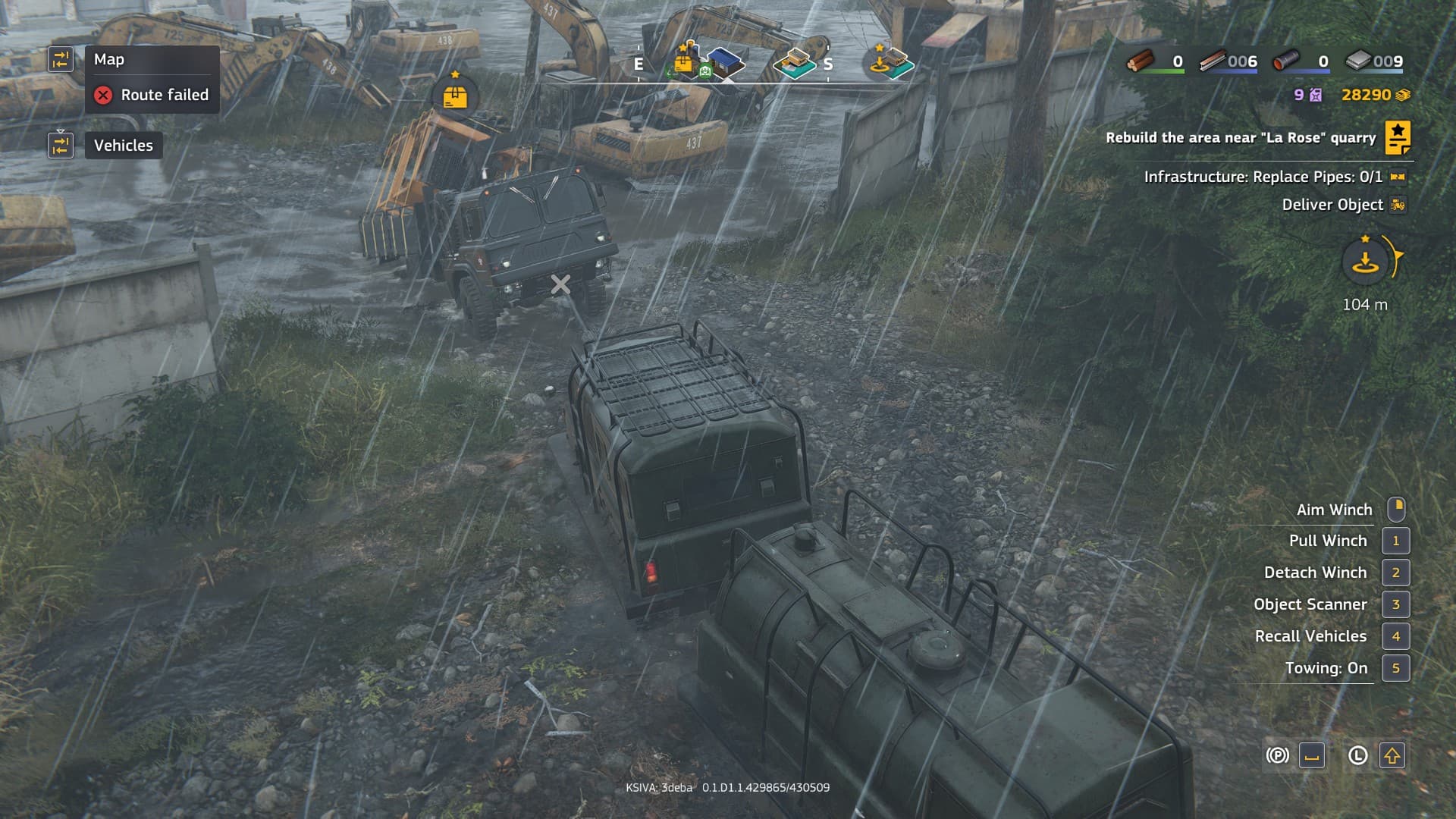 Поручения с починкой поврежденных труб и прокладыванию электрических кабелей проще строительства дорог, но также могут вызвать немало трудностей и занять много времени. Укладчик электрического кабеля – это довольно мощный агрегат на гусеничном ходу, который без особых проблем преодолевает почти любой тип местности. Однако для прокладки кабеля аппарат разрыхляет землю, серьезно ухудшая проходимость, из-за чего приходится: прокладывать кабеля по обочине; делать огромные крюки до точки назначения; опять строить дорогу там, где она не планировалась вовсе. В моём случае выполнение финального задания на одной из локаций растянулось почти на час, поскольку пришлось асфальтировать местность, по которой в самом начале был не очень удачно проложен кабель.