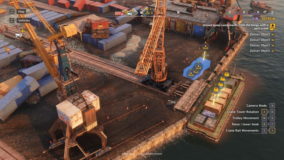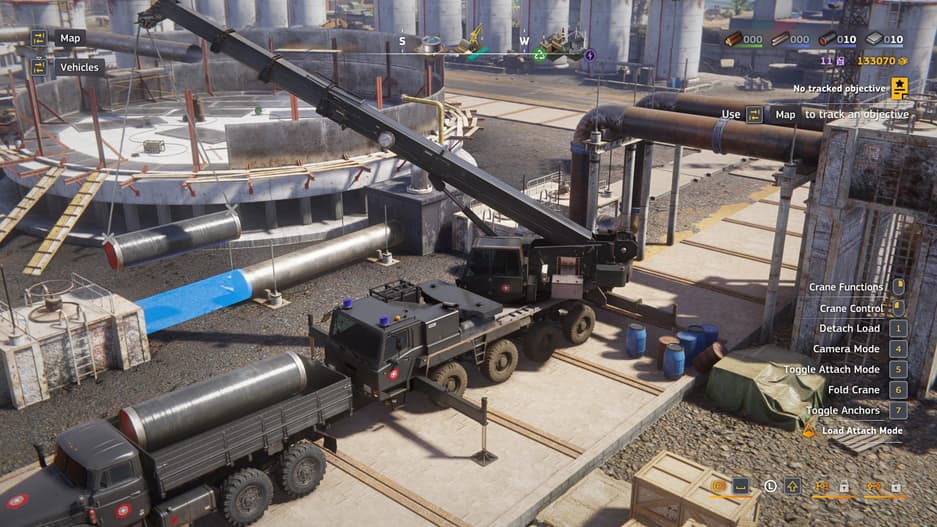 Также раздражает то, как в RoadCraft работает склад с ресурсами. Скажем, вам нужно построить мост, а для этого вам потребуется 10 бетонных плит. Вы запрашиваете 10 плит со своего склада, а затем медленно грузите каждую при помощи крана в кузов грузовика. Предполагая, что плиты потом придется еще разгружать, вы гоните сначала кран к мосту, а затем и грузовик. Вот только разгружать грузовик не надо – это происходит автоматически, нужно просто заехать в специальную зону и открепить груз. Почему разработчики так сильно усложнили загрузки, но упростили разгрузку — остается загадкой.