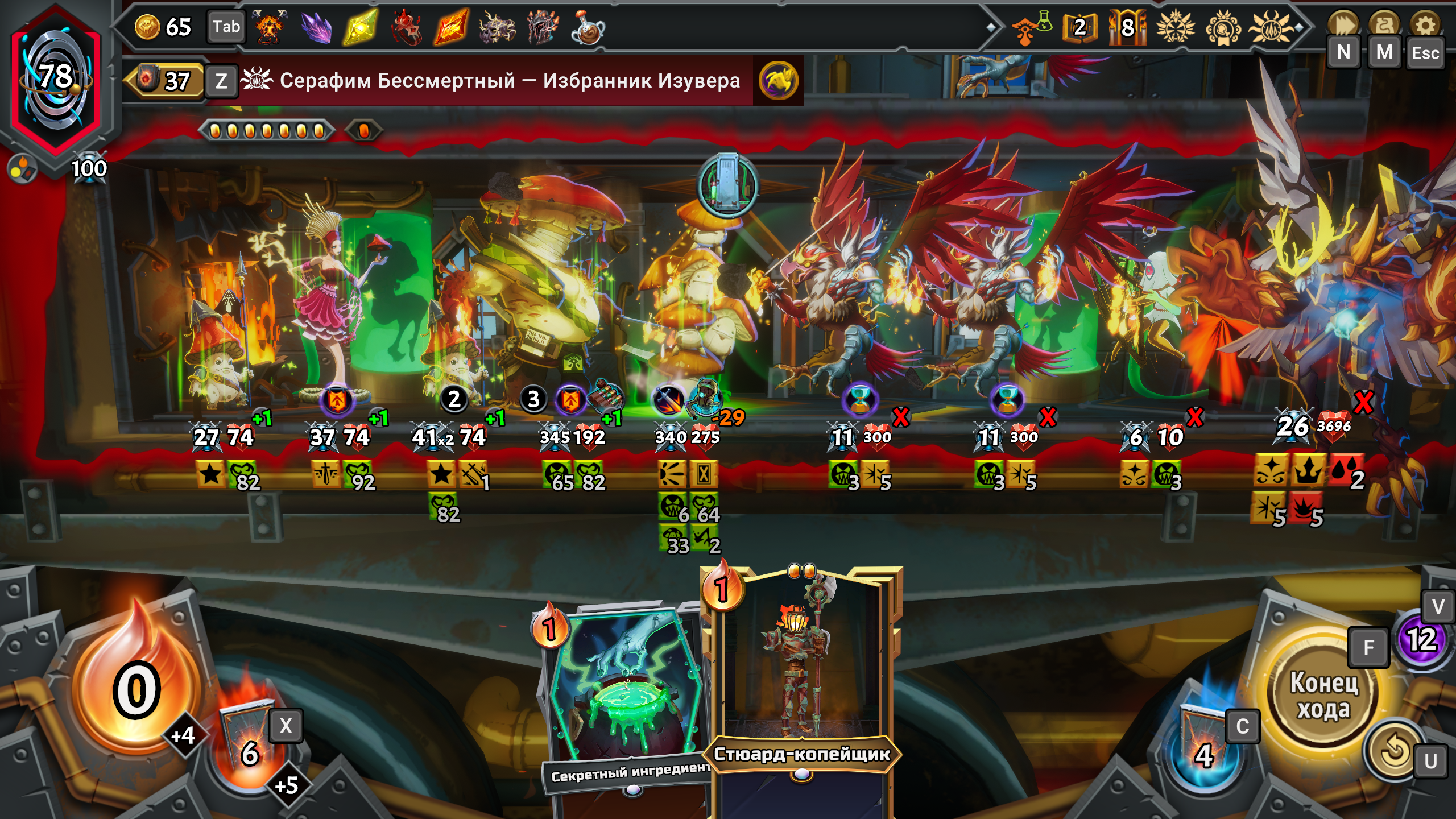 Некоторые предметы наделяют бойцов активными эффектами. Например, зельетворение — способность раз в несколько ходов бесплатно создавать усиливающие или ослабляющие зелья. Всё это — часть масштабной новой системы, появившейся в Monster Train 2.