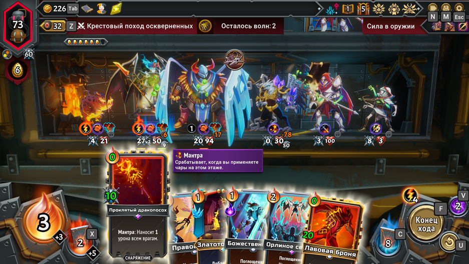 Monster Train 2 сложно назвать революцией, но это мощная эволюция и редкий пример сиквела, который, углубляя игровой процесс, делает его одновременно более дружелюбным. Игра всё ещё бьет по рукам за ошибки, но теперь у игрока появился шанс их исправить — без необходимости начинать весь забег с нуля. Теперь можно отменить ход до его завершения, если вы поспешили, сыграли не ту карту, передумали или заметили просчёт. Более того, бой можно перезапустить с самого начала — и делать это разрешено неограниченное количество раз. Эти изменения снижают общий уровень хардкорности и одновременно поощряют эксперименты — особенно на этапе, когда игрок только знакомится с новыми кланами, синергиями и механиками.