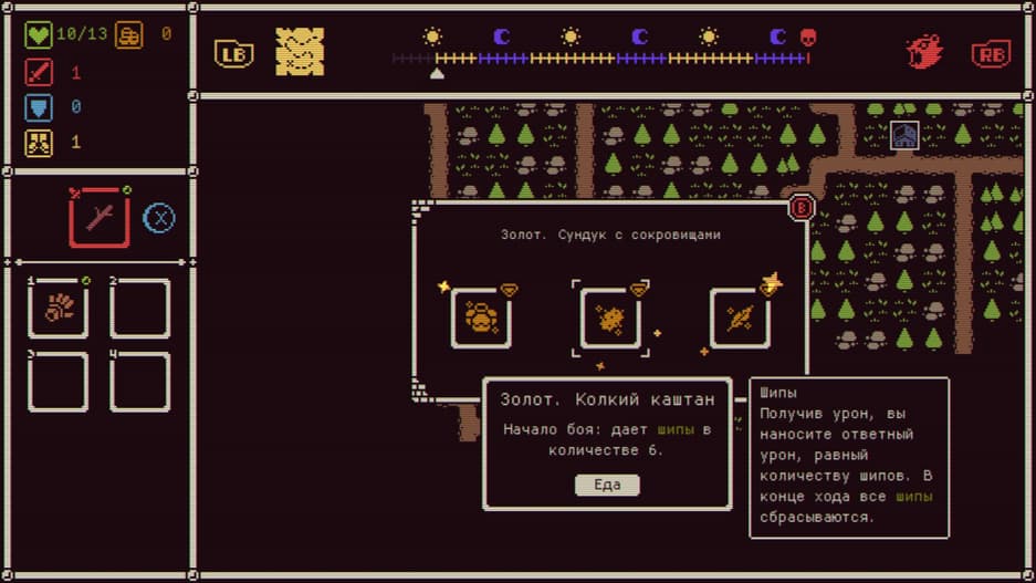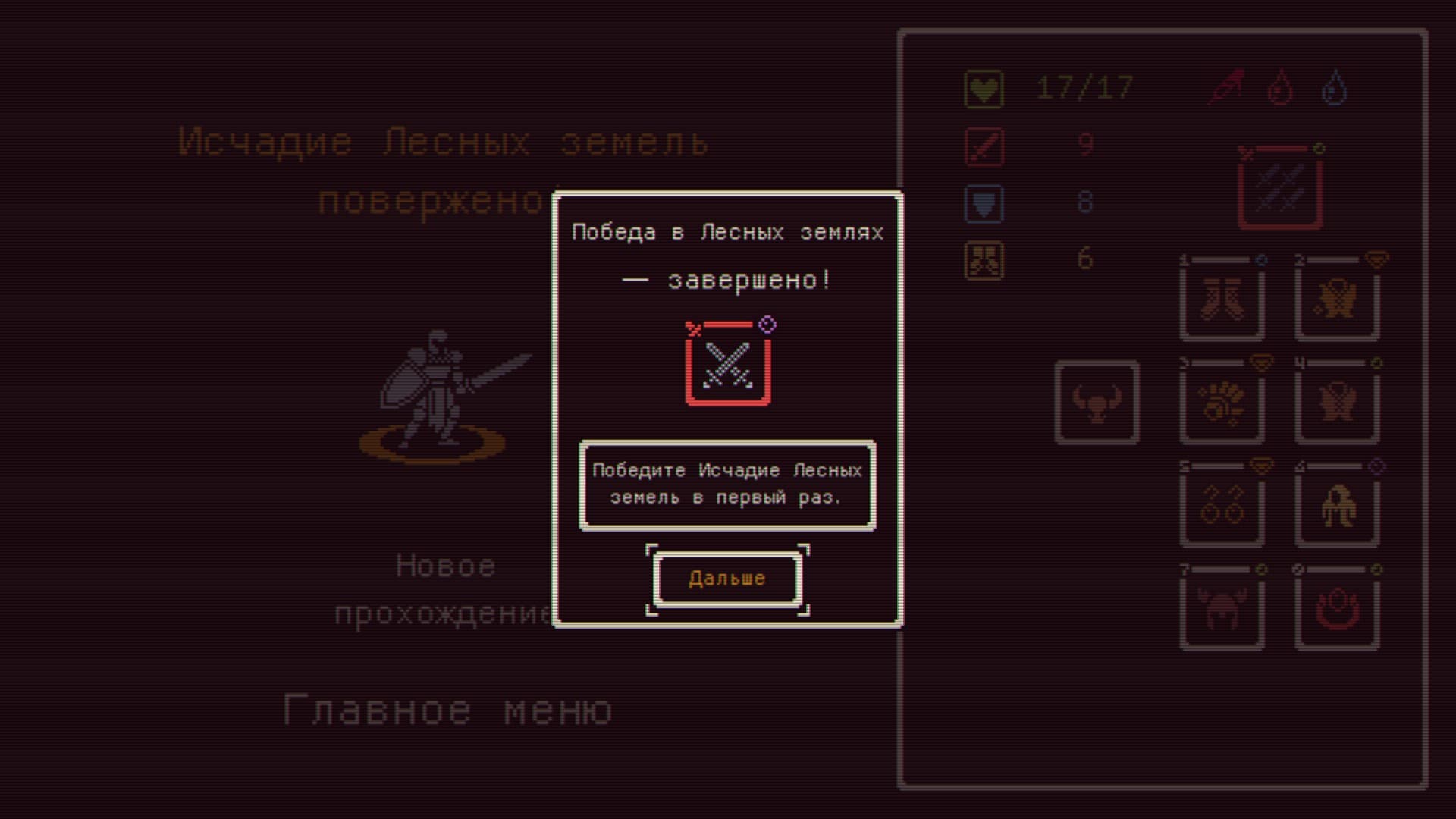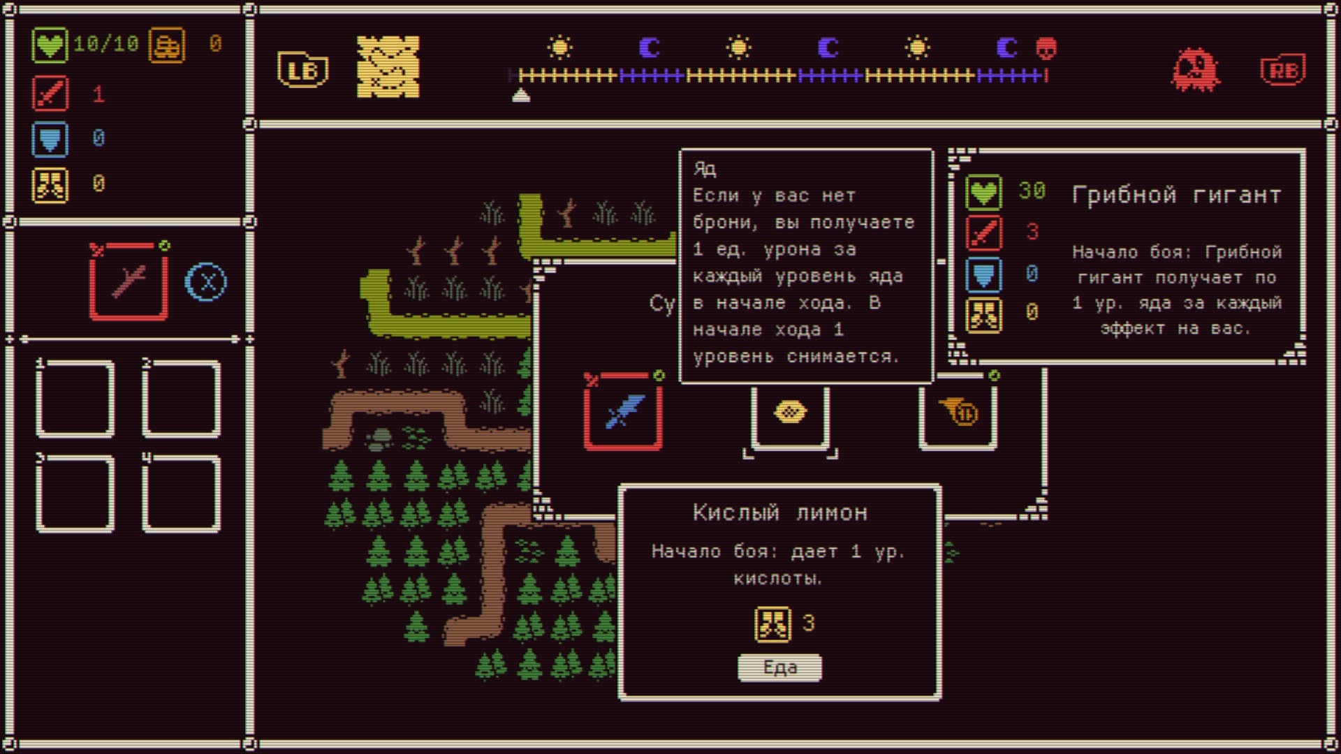 Финальным испытанием в лесу является битва с Лешим. Ещё начиная с демо-версии – он доставлял кучу проблем Если удастся одолеть первую фазу, то вторая продемонстрирует конское здоровье и постоянно увеличивающуюся атаку. Ей нет дело до уникальных сборок или преимущества игрока по скорости – атаковать друг-друга в любом случае придётся по очереди. В результате приходится забыть про креатив, и собирать предметы на основную атаку и защиту. Из-за Лешего я практически сдался, но на восьмом часу одолел его – на чистом упрямстве!