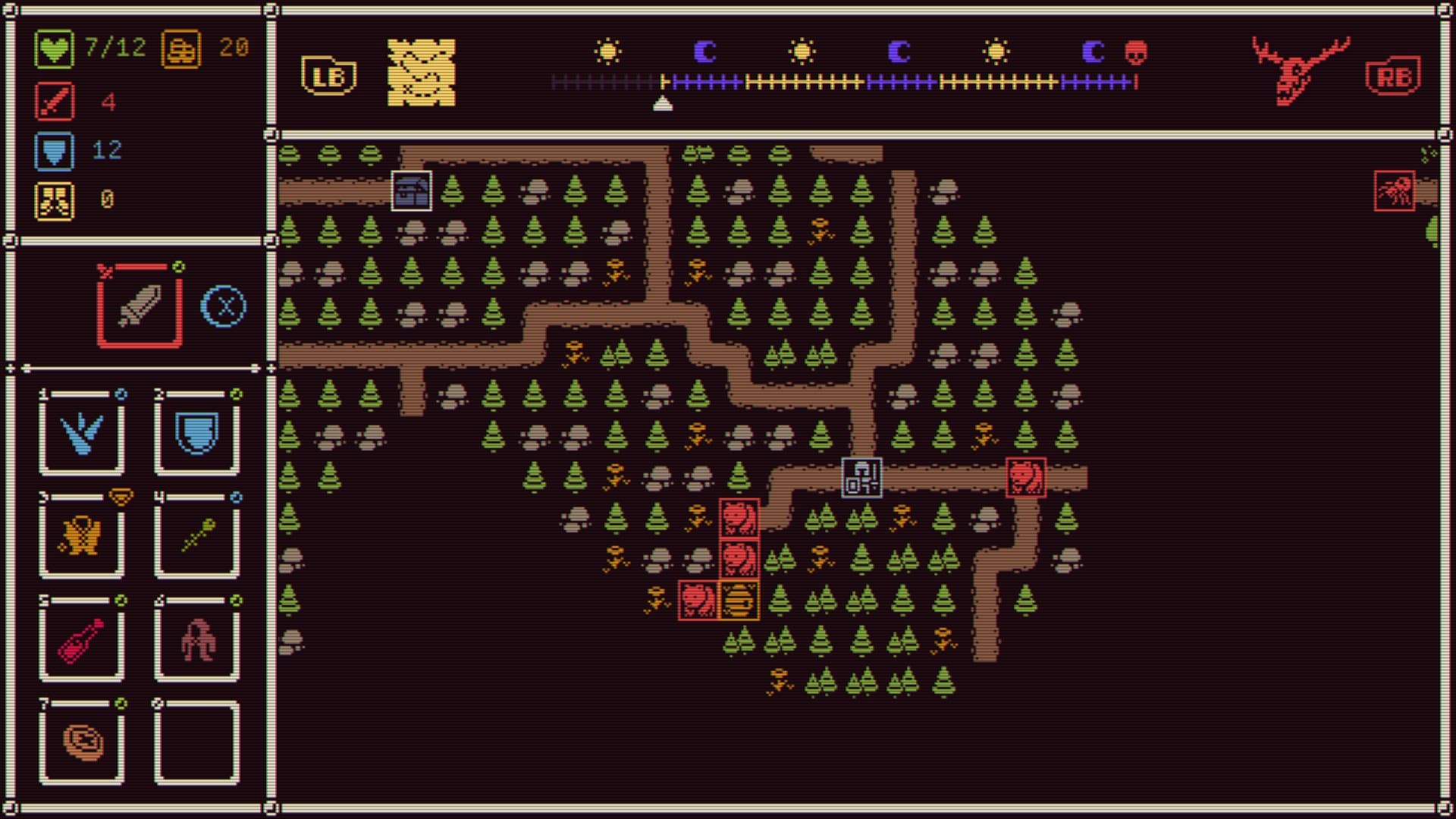 У игрока есть всего несколько дней, прежде чем прибудет босс. Днём удобно разведывать территорию и собирать предметы из сундуков. Ночью область видимости сужается, маркеры на карте превращаются в знаки вопросов, а животные начинают преследовать героя. Зато ночью активируются костры, которые позволяют восстанавливать здоровье.