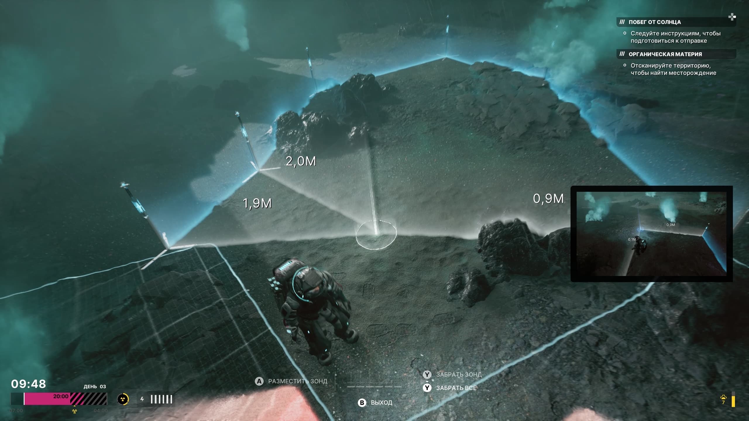 Планета — безлюдное и враждебное место. Атмосфера слегка напоминает «Интерстеллар» с агрессивной для выживания средой: радиация, беспощадные аномалии, магнитные бури. Здесь нельзя прыгать или карабкаться, а действия ограничены экзокостюмом, у которого быстро садится батарея, но благо есть способы подзаряжаться. Придётся продумывать каждый маршрут: что исследовать, как безопасно добраться до места, какие ресурсы собирать. Из металлов, органики, минералов и рапидия изготавливаются инструменты, предметы для заданий, достраивается и улучшается база.