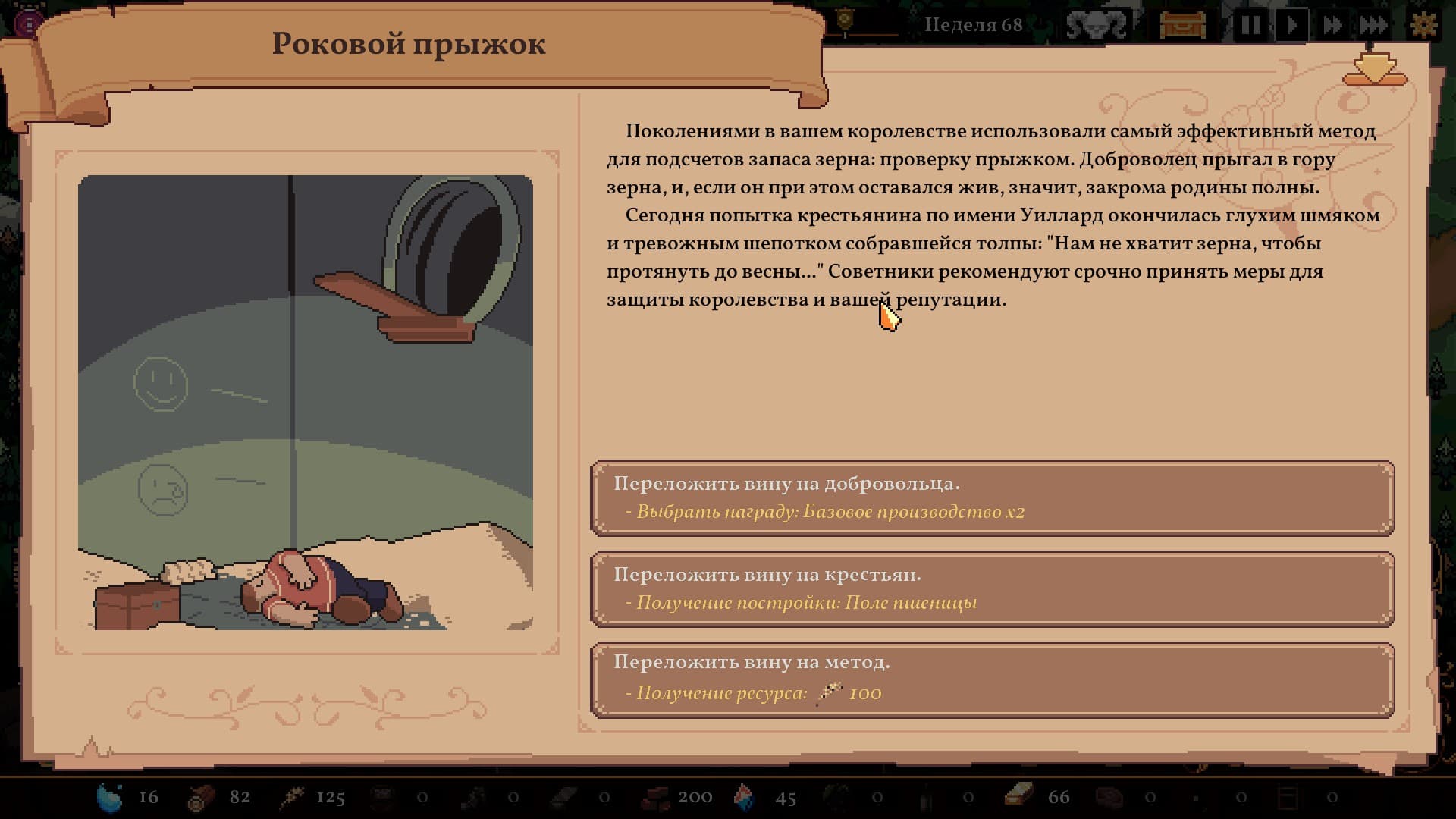 Скажем я хочу нанять мушкетёров. Для строительства их казарм нужно вино, но вот винодельни всё нет. А если вино удаётся получить сторонними способами, то его надолго не хватит, поскольку этот ресурс автоматически тратится на повышение морали. Или я хочу создать мучных драконов, но производящая муку мельница вновь не выпадает. Или игра несколько раз предлагает здание по усилению мучных драконов, но не само здание по производству мучных драконов.