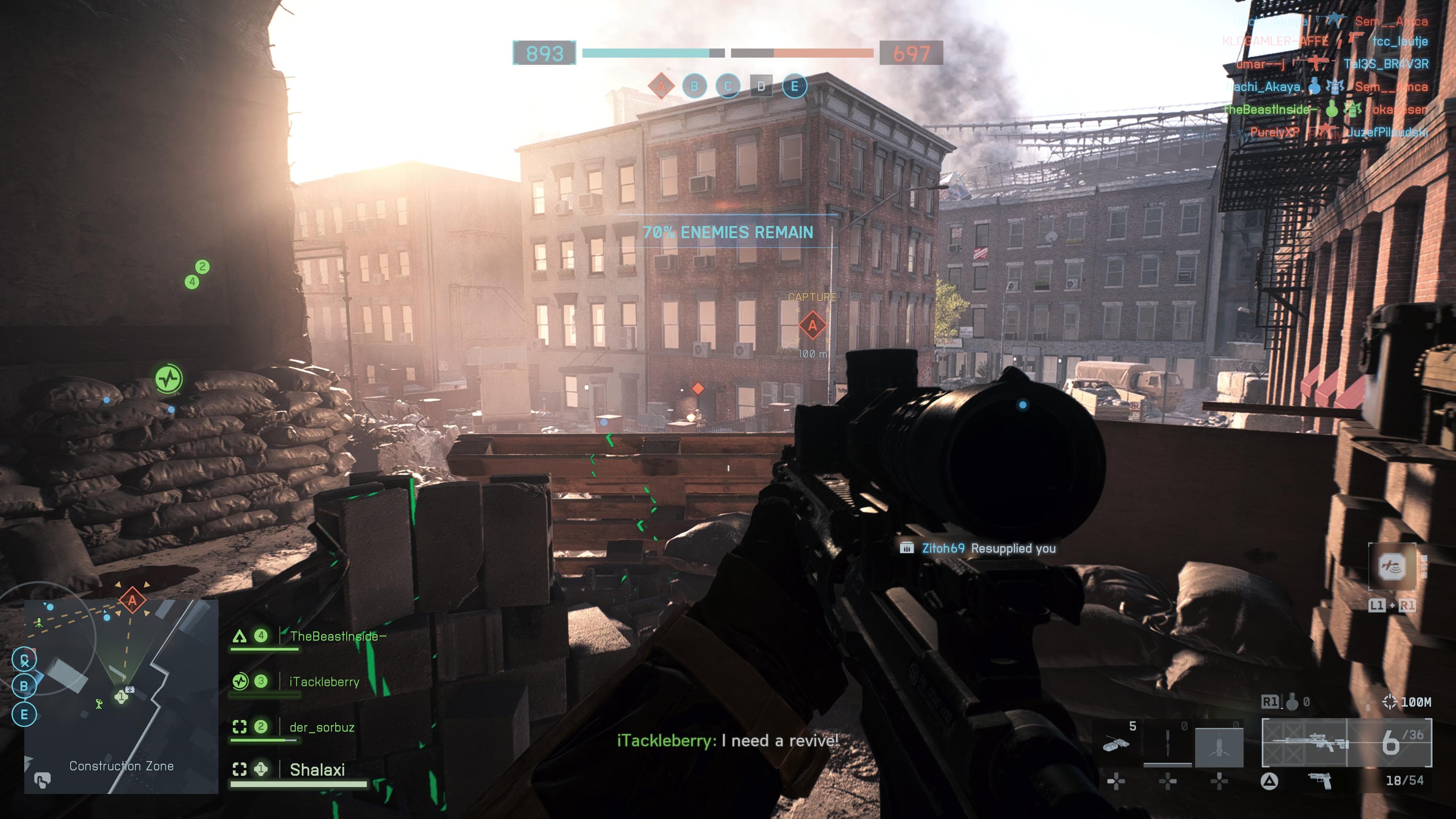 К слову, о спасении раненых товарищей. В предыдущих играх Battlefield упавшие в бою товарищи беспомощно корчились от боли и кричали под градом пуль, делая их спасение часто невозможным. Однако в шестой части раненых теперь можно схватить за шиворот и оттащить в более безопасное место. Механика делает спасение камрадов по-настоящему кинематографичным и в какой-то степени зрелищным событием.