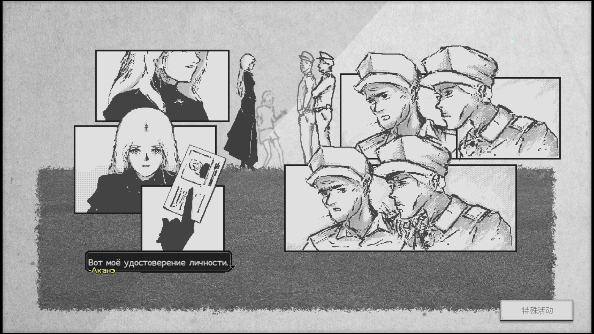 События дополняются чёрно-белыми вставками. В большинстве случаев они прорисованы вручную. Иногда разработчики используют фотографии реальных мест с наложением фильтра — на них помещают персонажей из игры, и смотрится это на редкость органично.