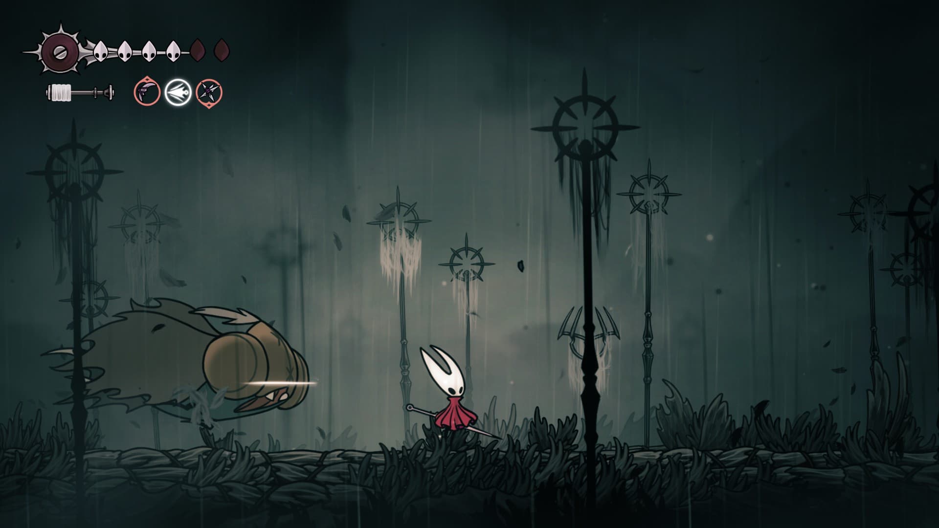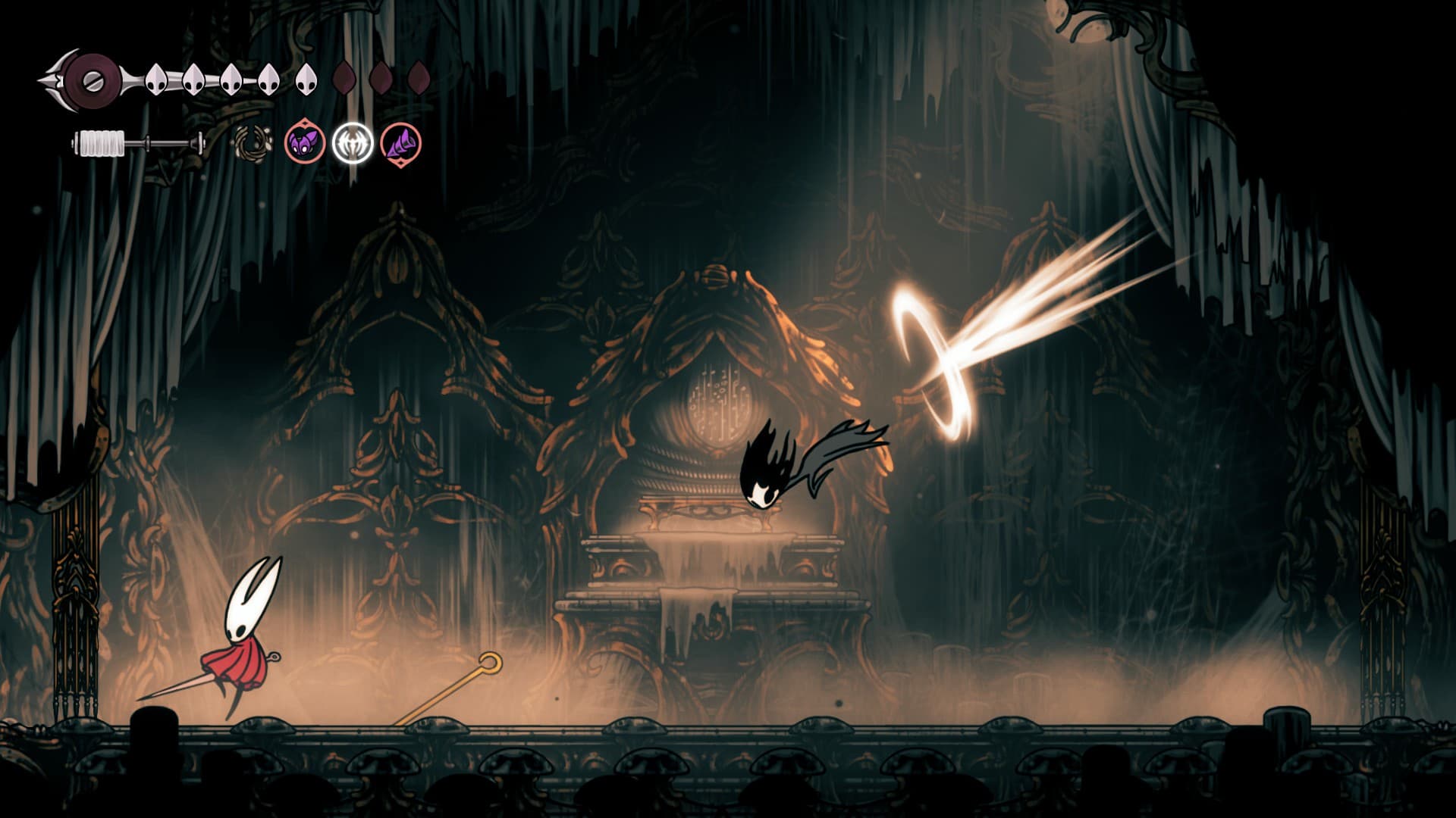 В определённый момент Хорнет научится играть на своей игле. Игра сообщит, что этот инструмент следует использовать для открывания определённых дверей. Однако песнь шёлка влияет и на жуков, заставляя их петь и изливать душу. Она даже затрагивает струны уже давно почивших! По сути, это аналог гвоздя грёз Рыцаря.