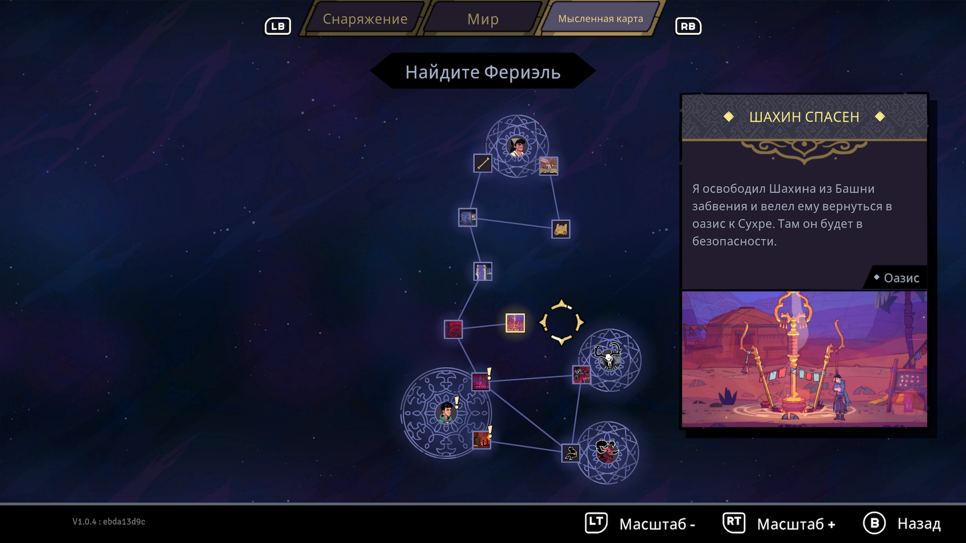 История здесь очень простая, даже скорее функциональная — по крайней мере на первый взгляд. После каждого возвращения в оазис сюжет получает небольшое развитие: открываются новые диалоги, появляются персонажи, найденные во время исследования локаций, раскрываются кусочки лора. Со временем у протагониста формируется мысленная карта — место, где записано всё, что связано с сюжетом. Она же подсказывает игроку, что делать дальше: выяснить, кого гунны держат взаперти, или понять, как открыть воду в акведуке, чтобы спасти пленника. Всё это постепенно двигает повествование вперёд и делает историю чуть глубже, чем казалось сначала.