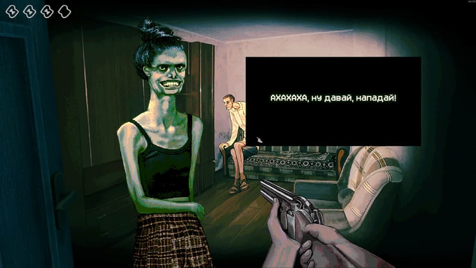 Затем стоит заглянуть в дверной глазок, познакомиться с источником звука и послушать душещипательную историю с доказательством того, что посетитель достоин приглашения. Смурной великан, перекошенная кассирша, лудоман в майке amogus, женщина-медиум, парень с зашитым ртом, женщина в куртке в невыносимую жару и уйма других странников. И в каждом будет нечто подозрительное – доверять здесь нельзя никому. В игре море отсылок на известные фильмы и события, а посетители напоминают известных личностей. Обнаружатся местные Николай Валуев, Игорь Савочкин, Пророк Санбой и даже Никита Джигурда.