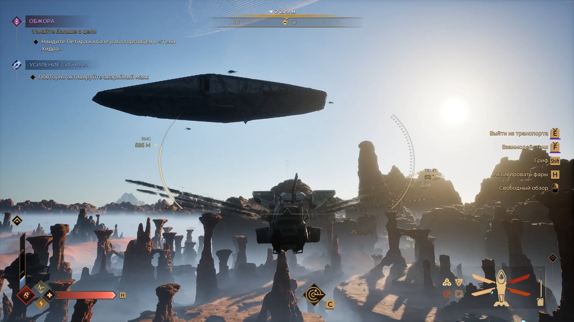 Техники в Dune: Awakening хватает, и она заметно упрощает жизнь на Арракисе. В распоряжении игрока юркие мотоциклы, массивные багги на четверых, почти бесшумные колесоходы, краулер и несколько видов орнитоптеров. Управление у большинства схоже, но у воздушных машин свои особенности: орнитоптеры разгоняются, когда скользят по воздуху с выключенным двигателем.
