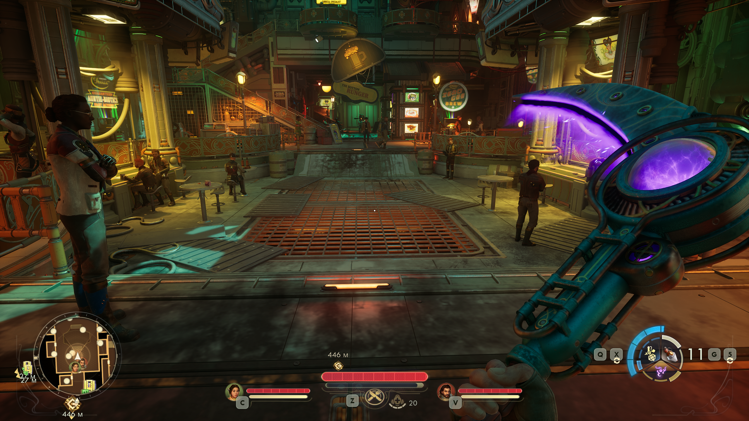 При этом отдельные интерьеры, напротив, поражают вкусом и вниманием к деталям. Научные лаборатории, бары и жилые зоны сочетают элементы ретрофутуризма и ар-деко — выглядит это органично, порой не хуже, чем в каком-нибудь Bioshock Infinite.