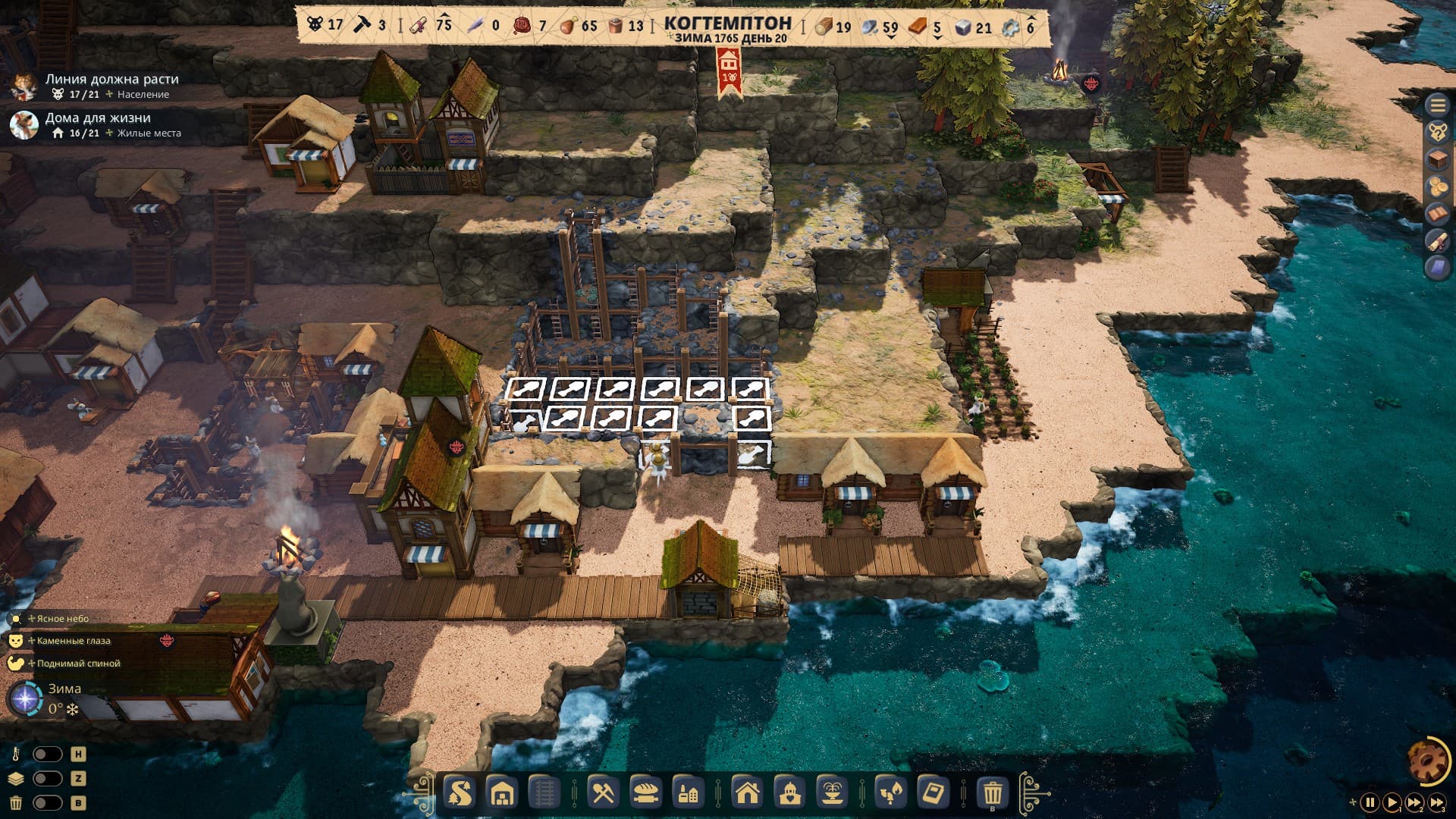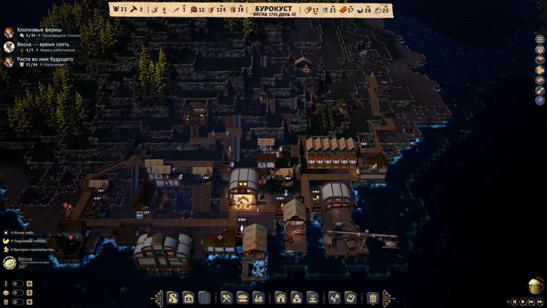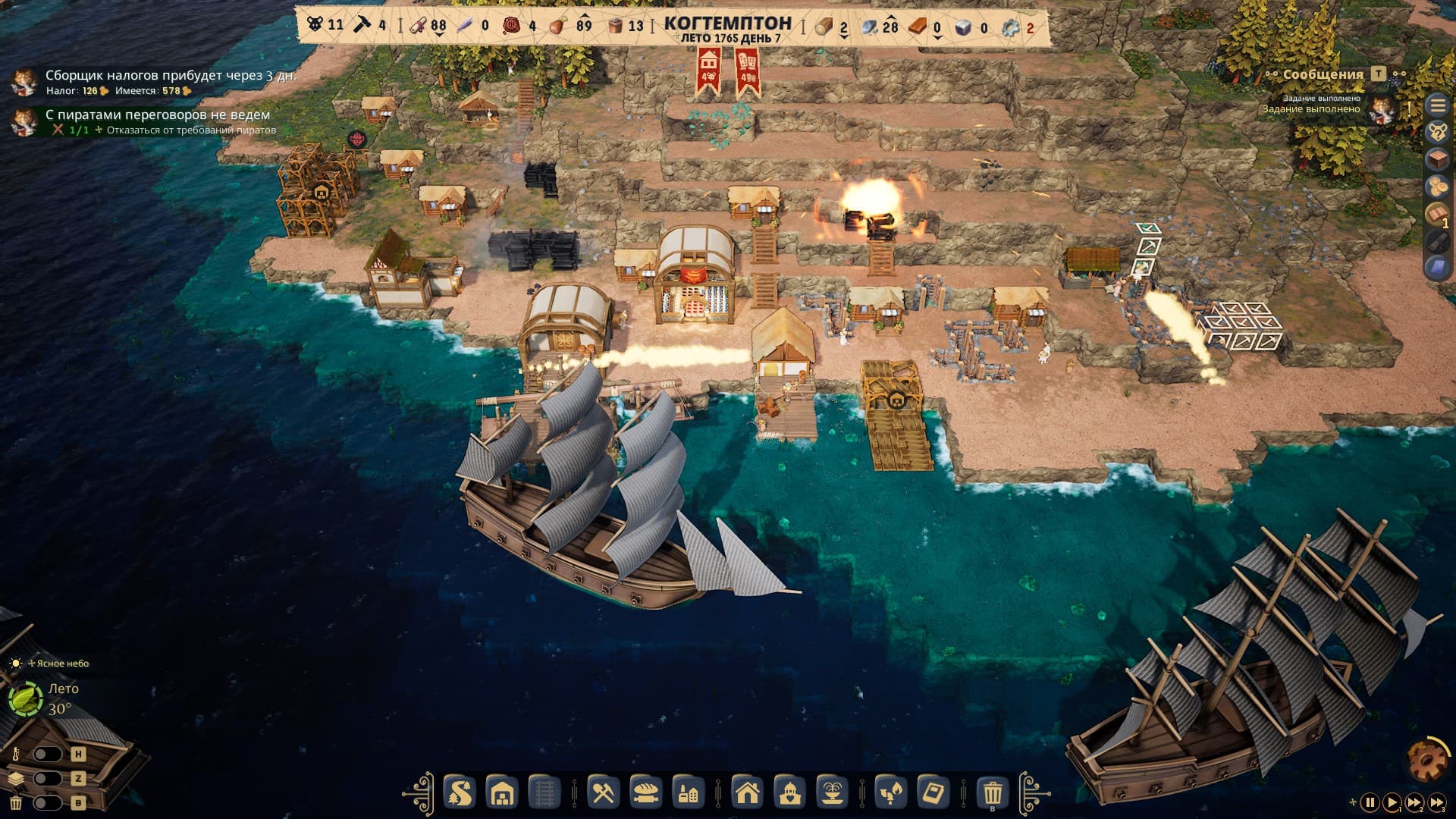 У игры широкая вариативность настроек. Можно усложнить себе жизнь – настроив малое количество ресурсов, непомерные налоги и постоянные налеты пиратов. А можно максимально облегчить жизнь и убрать пиратское присутствие. Я бы хотел ещё функцию отключения налогов, чтобы превратить игру в уютную песочницу — скорее всего, нечто подобное стоит ждать в полном релизе.