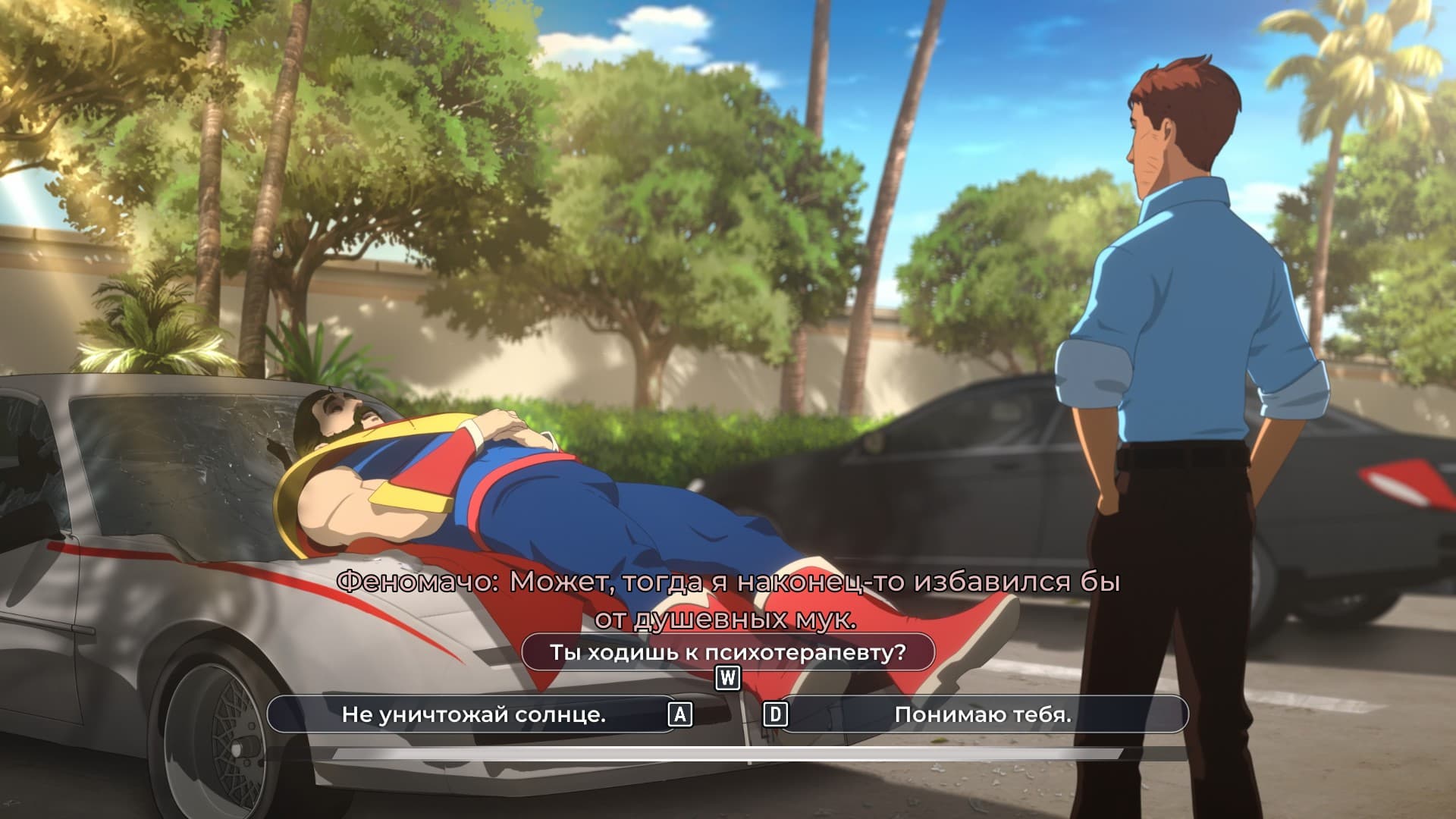То были примеры классических супергероев. Но суть игры заключается в пародировании сериалов прошлого, где герои основную часть времени занимаются повседневными делами и используют таланты самыми необычными способами.