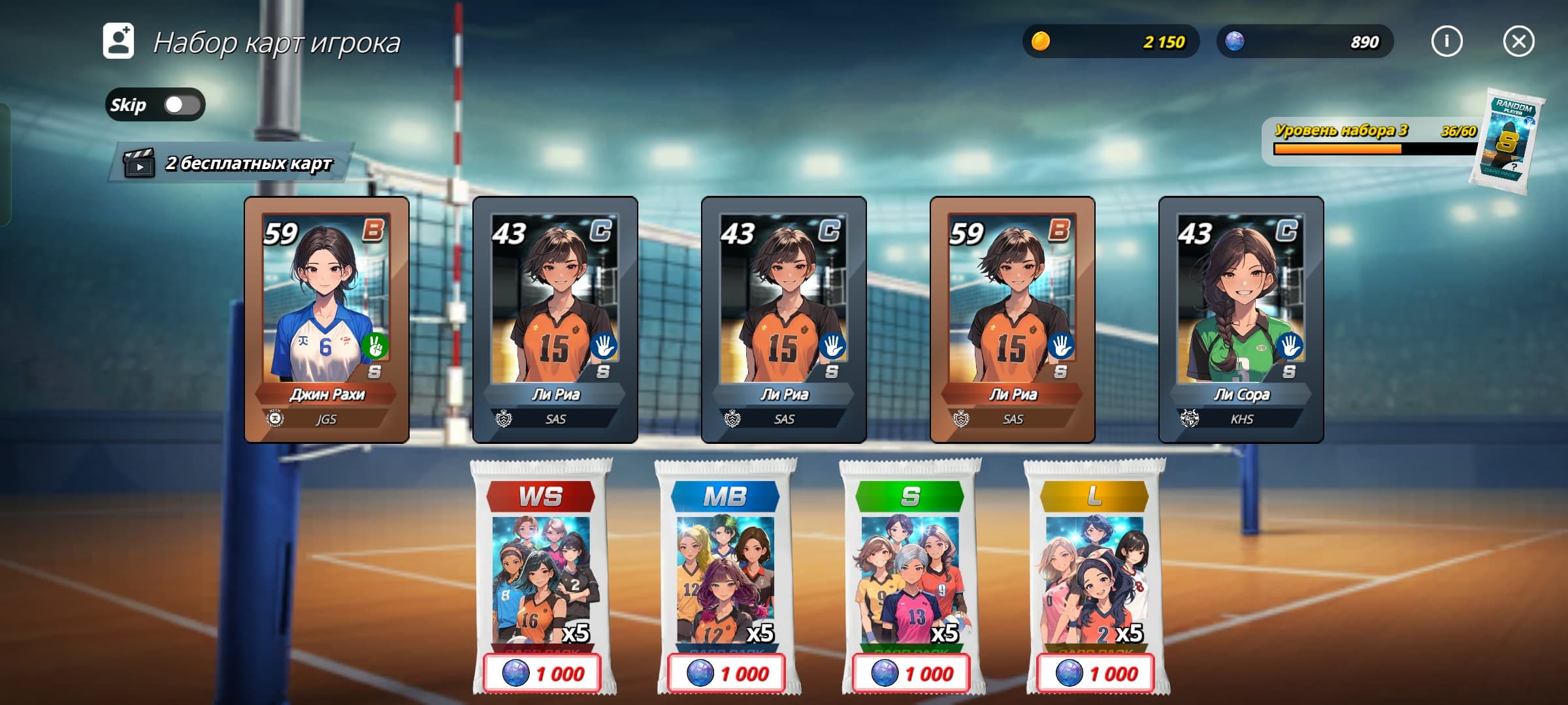Дело в том, что за премиальную валюту и очки рекрутинга мы получаем карточки волейболисток. Это и традиционное для мобильных игр «коллекционирование», и элемент гача — включая шанс выбить редких персонажей. При этом для прокачки игроков требуются дубликаты их карточек. А чтобы поднять волейболистку класса S, нужно собрать немало очень редких карт. Соответственно, чтобы открыть даже небольшое количество новых приёмов для своих героинь, придётся приложить значительные усилия.