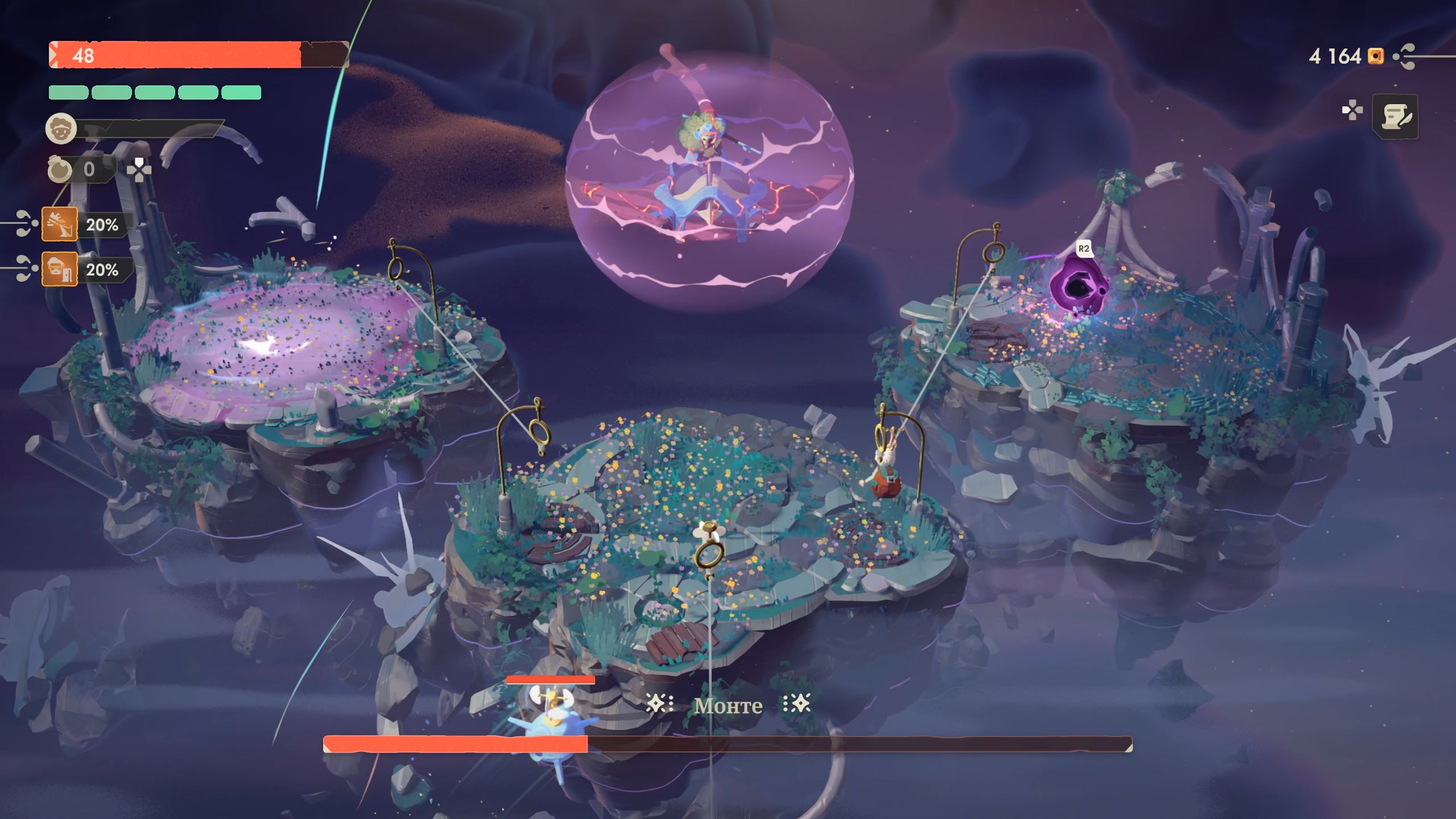 Отдельные схватки всё же выделяются дизайном и постановкой. Например, бой с Монте, управляющим летающим скатом во второй локации Эолии — Воющей бухте. Он зрелищный, масштабный и ощущается как финальный — что логично, ведь по сути это и есть главный босс раннего доступа.