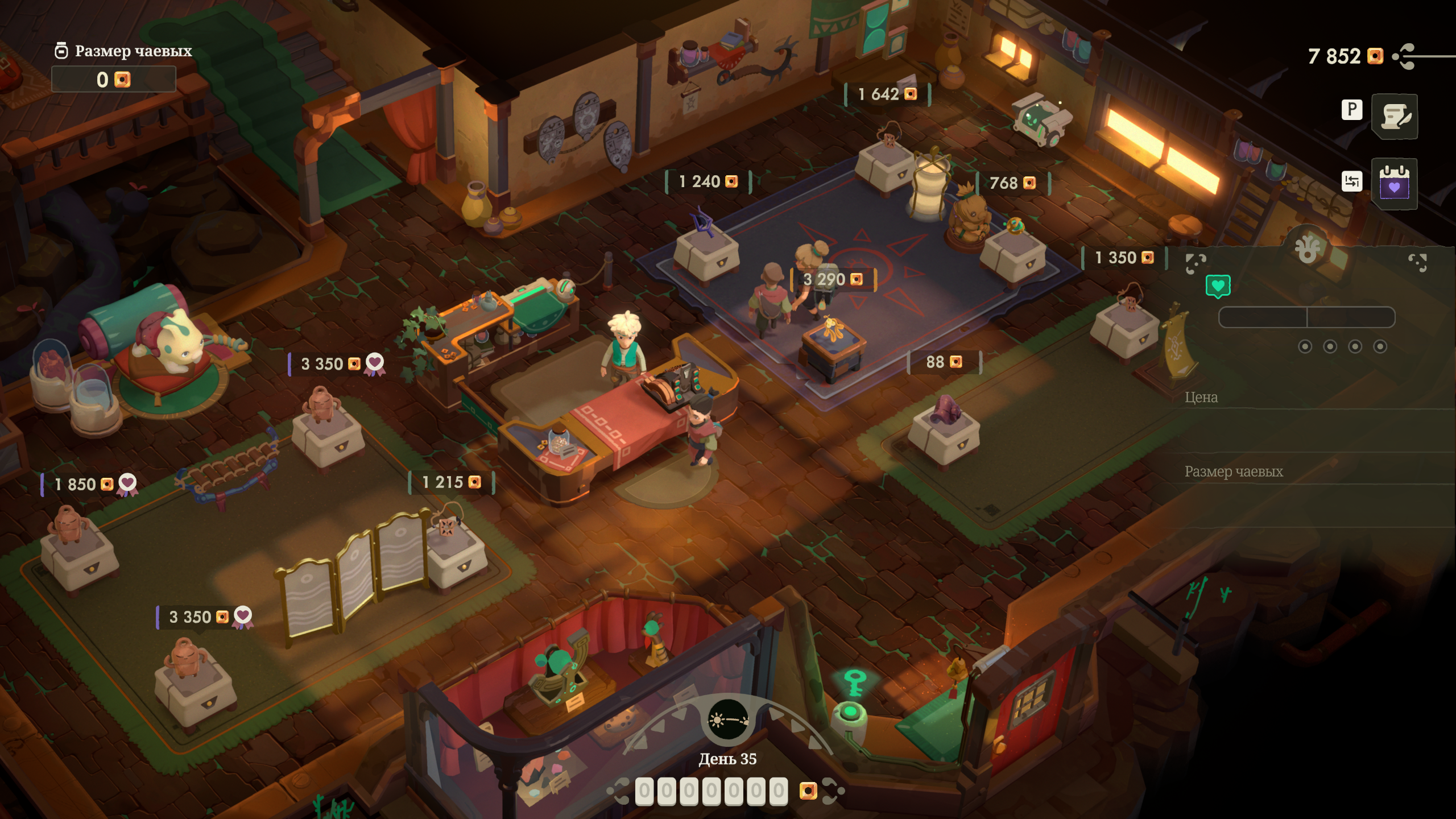 Продажа по оптимальной цене заполняет специальный счётчик — местный аналог усилений из боевых забегов. Когда шкала заполняется, можно активировать временные бонусы для торговой сессии: увеличить стоимость реликвий или повысить вероятность (и размер) чаевых. Количество доступных улучшений и их сила зависят от отдельной ветки прокачки.