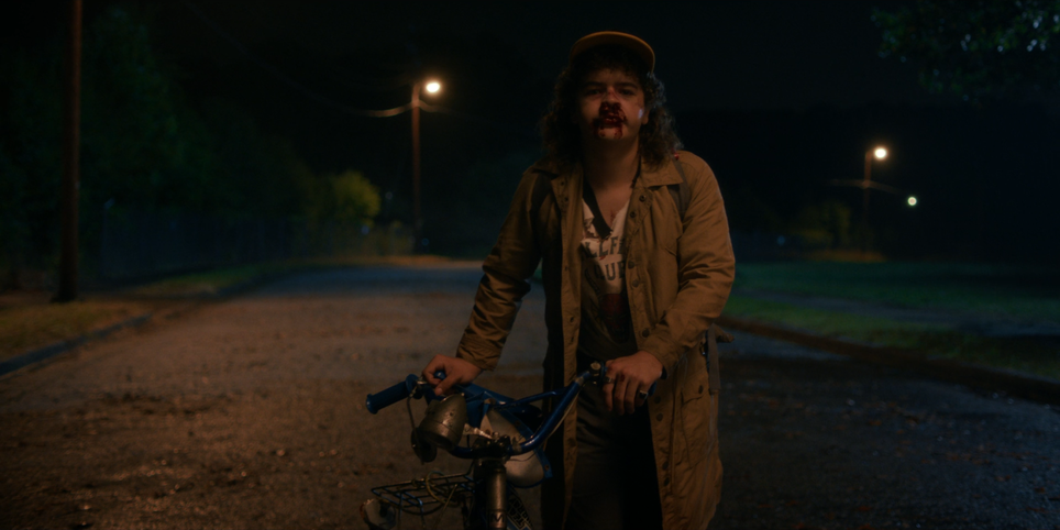 Создатели не обходят стороной и трагическую смерть Эдди Мансона. Здесь главным носителем этой линии становится Дастин, который заметно повзрослел. Его прежний энтузиазм и искренний оптимизм теперь соседствуют с эмоциональной тяжестью, которой раньше у него не было. Он по-прежнему носит футболку «Адского клуба», отстаивает память Эдди и не желает мириться с тем, как город превратил его друга в удобного «козла отпущения».