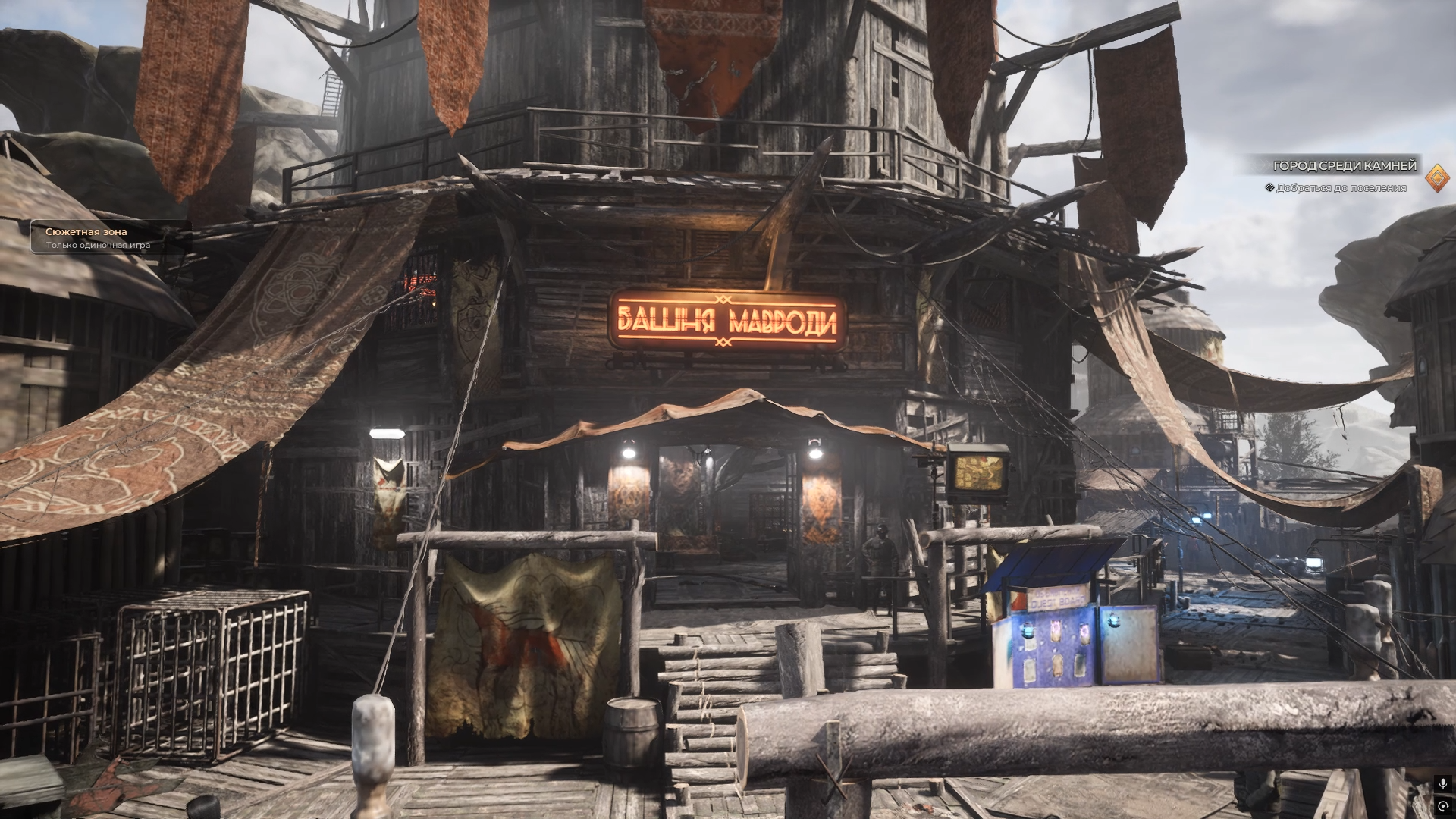 Помимо арены есть аналог extraction-шутера («Тёмная зона»). Это отдельная зона, где игроки могут собирать лут, сражаться друг с другом и выполнять задания. На карте около десятка точек интереса: ресурсы для крафта, ремонта и опыт. Теоретически это ключевая площадка для PvP, но на практике она невостребована. За десятки вылазок вы вряд ли столкнетесь с игроком. При этом ценность добычи вызывает вопросы: ресурсы там те же, что и в спокойных PvE-локациях. Система риска реализована формально: при гибели игрок теряет только найденные предметы, но не экипировку. Напряжение отсутствует.