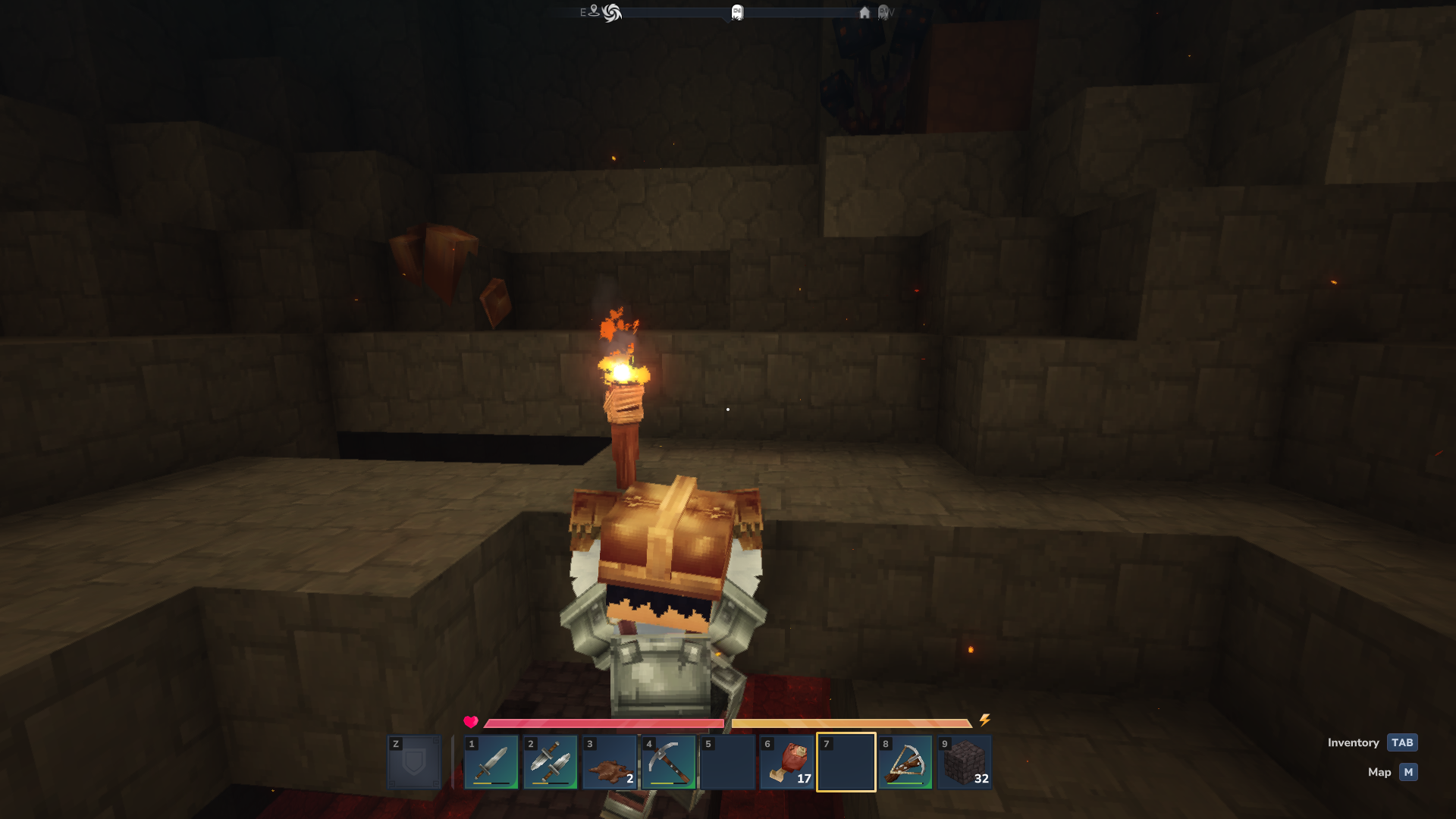 При этом Hytale перерабатывает её ключевые элементы. Вместо индикатора голода используется шкала выносливости. Она расходуется не только на бег, но и на силовые атаки, а также на блокирование вражеских ударов. Это связывает передвижение, бой и защиту в единую систему ресурсов и делает позиционирование более осмысленным.