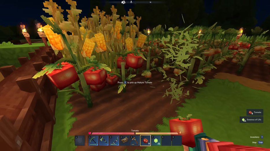 Выращивание сельскохозяйственных культур устроено проще. У растений есть фиксированный цикл созревания. После их посадки и поливки водой можно переждать ночь и утром собрать урожай. Семена делятся на два типа: одноразовые и бесконечные. Первые необходимо заново высаживать после каждого сбора урожая, вторые остаются в земле и продолжают давать плоды без повторной посадки. Это снижает нагрузку на игрока и делает фермерство менее трудоёмким.